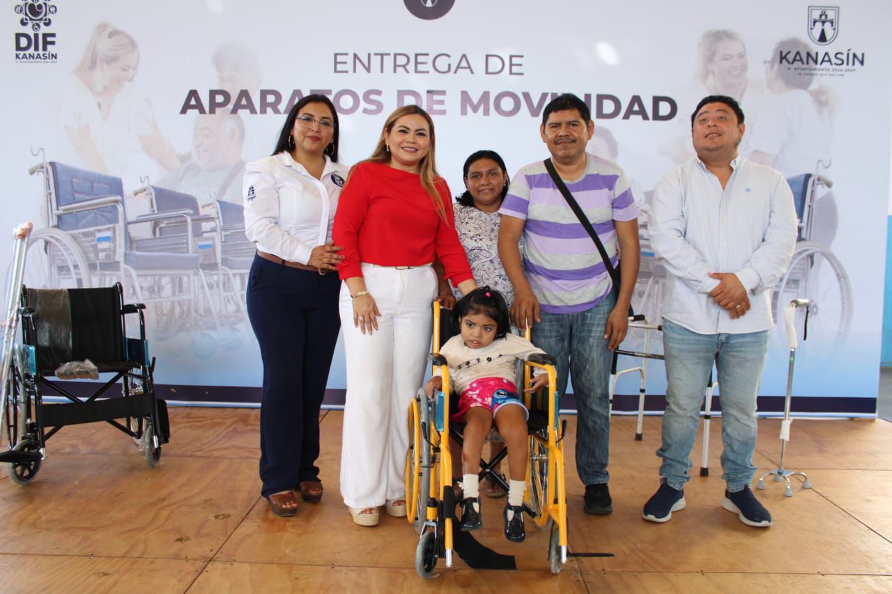 A partir de hoy, 64 personas tendrán una mejora en su calidad de vida, al ser beneficiarios de la entrega de sillas de ruedas, burritos, bastones, muletas, entre otros accesorios que le ayudarán en su movilidad diaria, los cuales se entregaron en evento que encabezaron el alcalde Edwin Bojórquez Ramírez y su esposa y presidenta del DIF de Kanasín, Raquel Balam Rocha de Bojórquez.