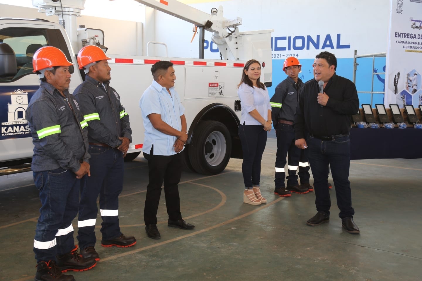 En el municipio de Kanasín, también hay cambios que se notan, por primera vez en la historia de este municipio, el alcalde Edwin Bojórquez Ramírez entregó este día, adquirida con recursos del Ayuntamiento, una moderna grúa para brindar una atención más eficiente y rápida en materia de alumbrado público en el municipio, esto como parte del proceso de modernización y mejora administrativa del gobierno que encabeza.