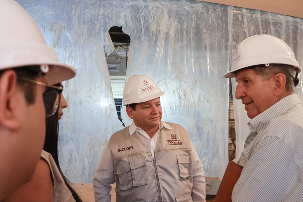· El Gobernador Joaquín Díaz Mena realizó un recorrido de supervisión para conocer las obras de restauración que se llevan a cabo en este recinto cultural, con el fin de recuperar su grandeza arquitectónica y el orgullo que ha generado durante tantas décadas entre las y los yucatecos.
