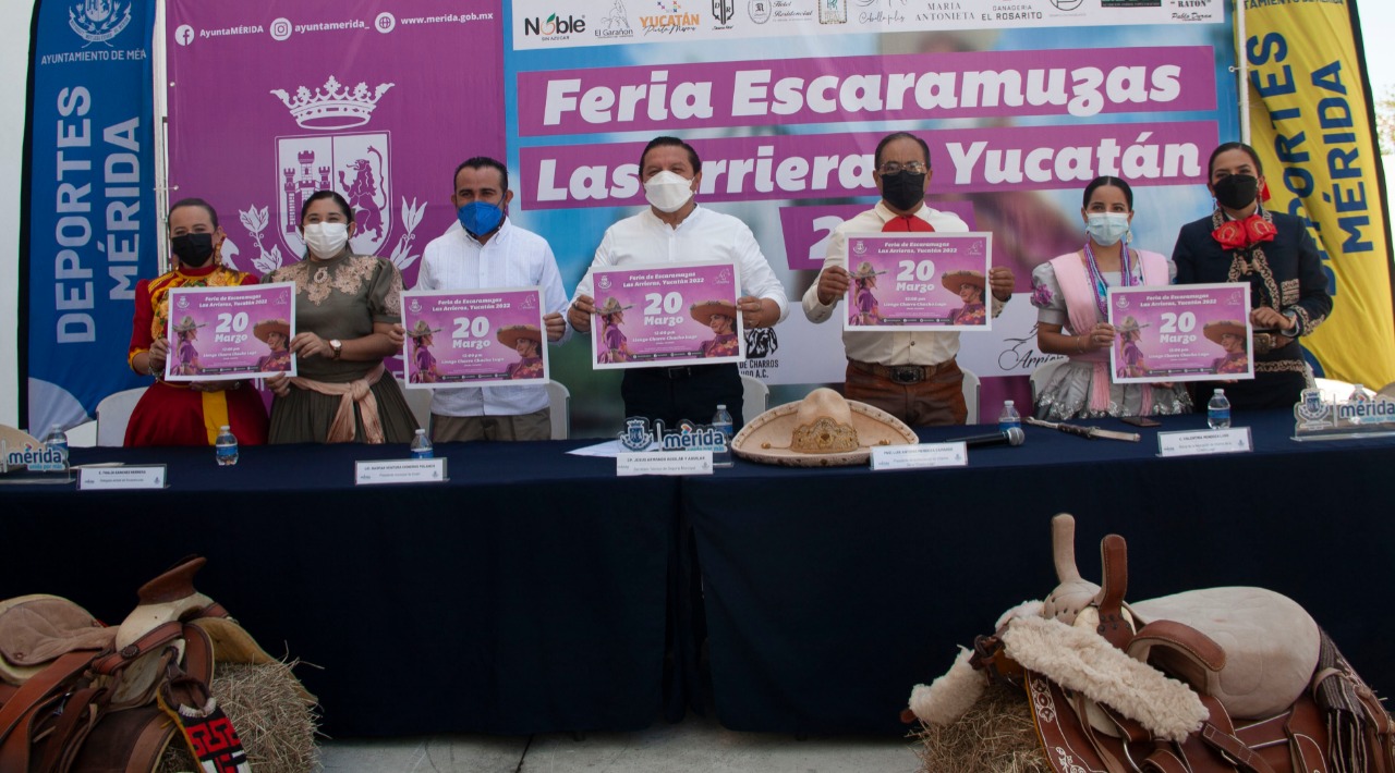 Con la presencia de Jesús Aguilar y Aguilar, Secretario Técnico de Deportes del Ayuntamiento de Mérida, en representación del alcalde Renán Barrera Concha, y Gaspar Cisneros Polanco, Presidente Municipal de Umán; las Arrieras, a través de la reina de la Reina de la Asociación de Charros de la Chacho Lugo y de la capitana de escaramuzas Las Arrieras, Valentina Mendoza Lugo e Isela Lugo Ancona, respectivamente, presentaron este evento que comenzará a partir del mediodía.