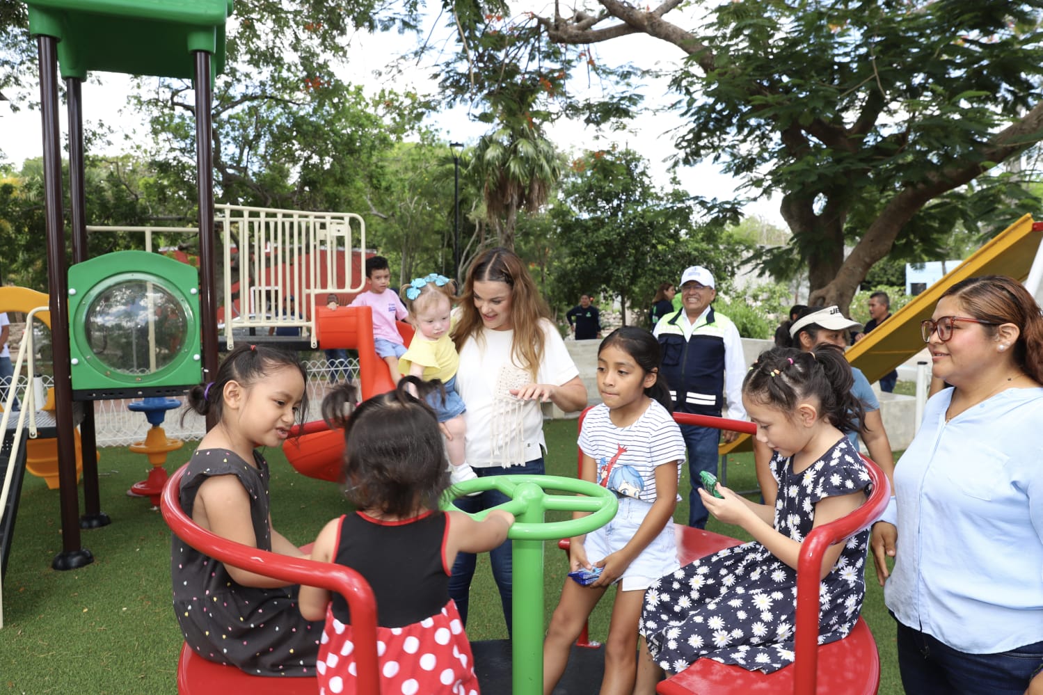 Posteriormente la primera edil convivió con las y los niños en los nuevos juegos y recorrió parte de las calles para seguir atendiendo las necesidades de las familias.