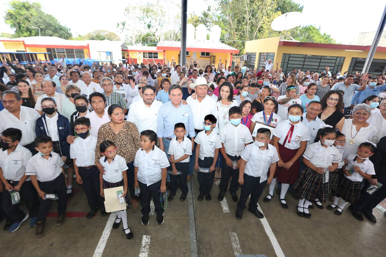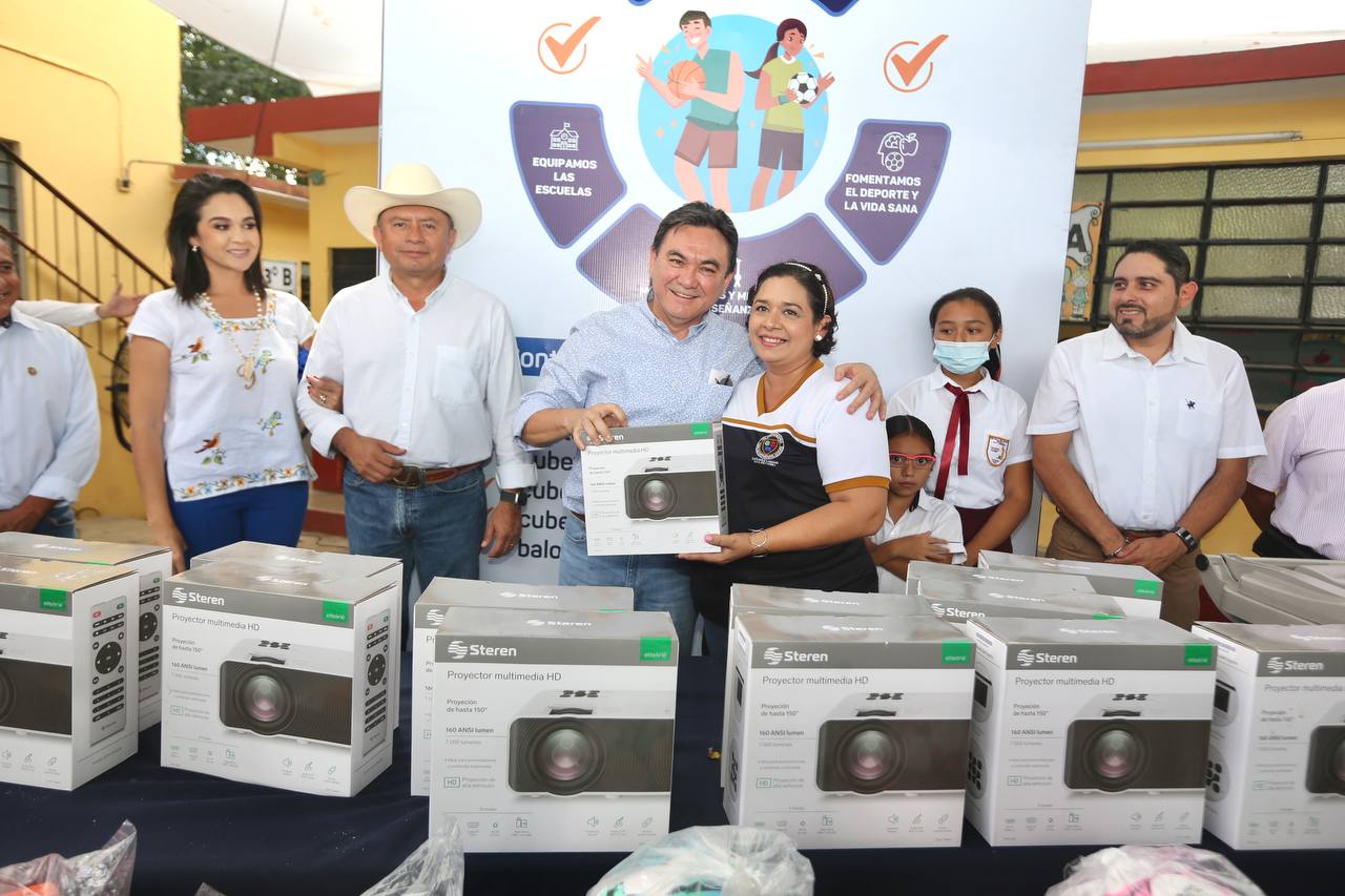 Con el fin de contribuir a un mejor desempeño escolar de alumnas y alumnos de escuelas de nivel primaria y secundaria de Tizimín, el titular de la Secretaría de Educación del Gobierno del Estado, Liborio Vidal Aguilar, entregó lentes, mobiliario escolar y kits de la estrategia “Mejora tu Secu”.Acompañado del alcalde del municipio, Pedro Couoh Suaste, la coordinadora del programa “Ver bien para aprender mejor”, Magally Cruz Nucamendi, autoridades educativas, docentes, estudiantes y sociedades de padres de familia, Vidal Aguilar encabezó la actividad en la escuela primaria “Manuel Alcalá y Alcalá”, donde se dieron cita los colectivos de los centros educativos beneficiados.La directora de la escuela sede, María Teresa Aguilar Gamboa, agradeció estos beneficios que representan una gran diferencia en la vida de los estudiantes que necesitan una herramienta tan importante como los lentes, para poder aprovechar mejor sus clases y dar mejores resultados en sus procesos de aprendizaje.
