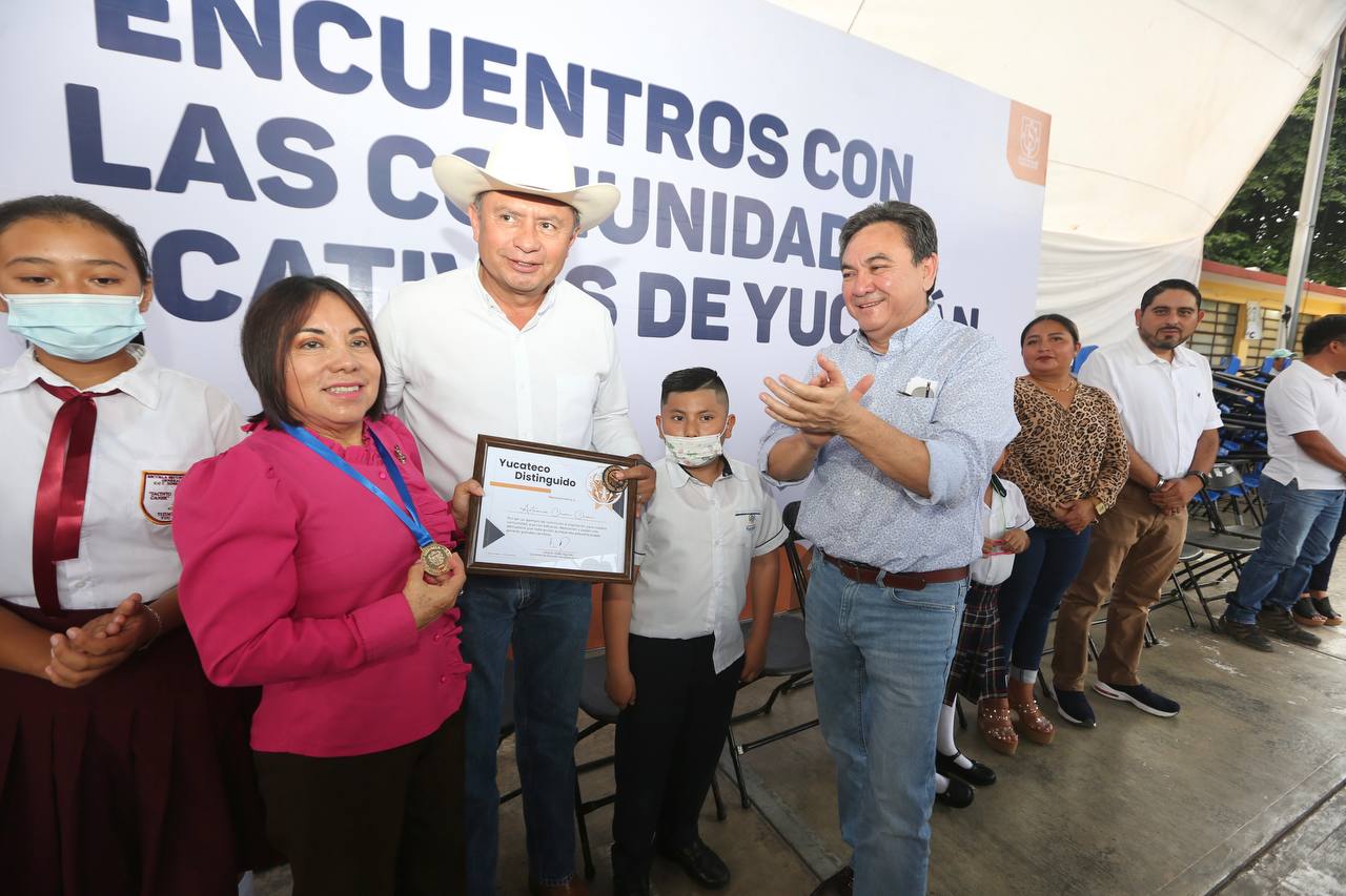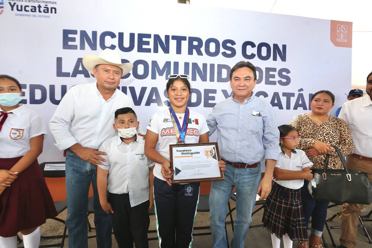 En el marco de esta actividad, también se otorgó la medalla y reconocimiento 1“Yucateco Distinguido” a la deportista, Karime Nicole Ortiz Contreras y la maestra Artemia Chan Chan por sus 41 años de servicio educativo.También participaron el diputado federal por el Distrito I, Sergio Chalé Cauich; la directora general de Educación Básica, Linda Basto Ávila; el director general de Desarrollo Educativo y Gestión Regional, Leonel Escalante Aguilar; la directora de Desarrollo Personal y Social, Alicia Magally Cruz Nucamendi y Juan Alcocer Polanco, diputado suplente por el X Distrito Local…(OGY)