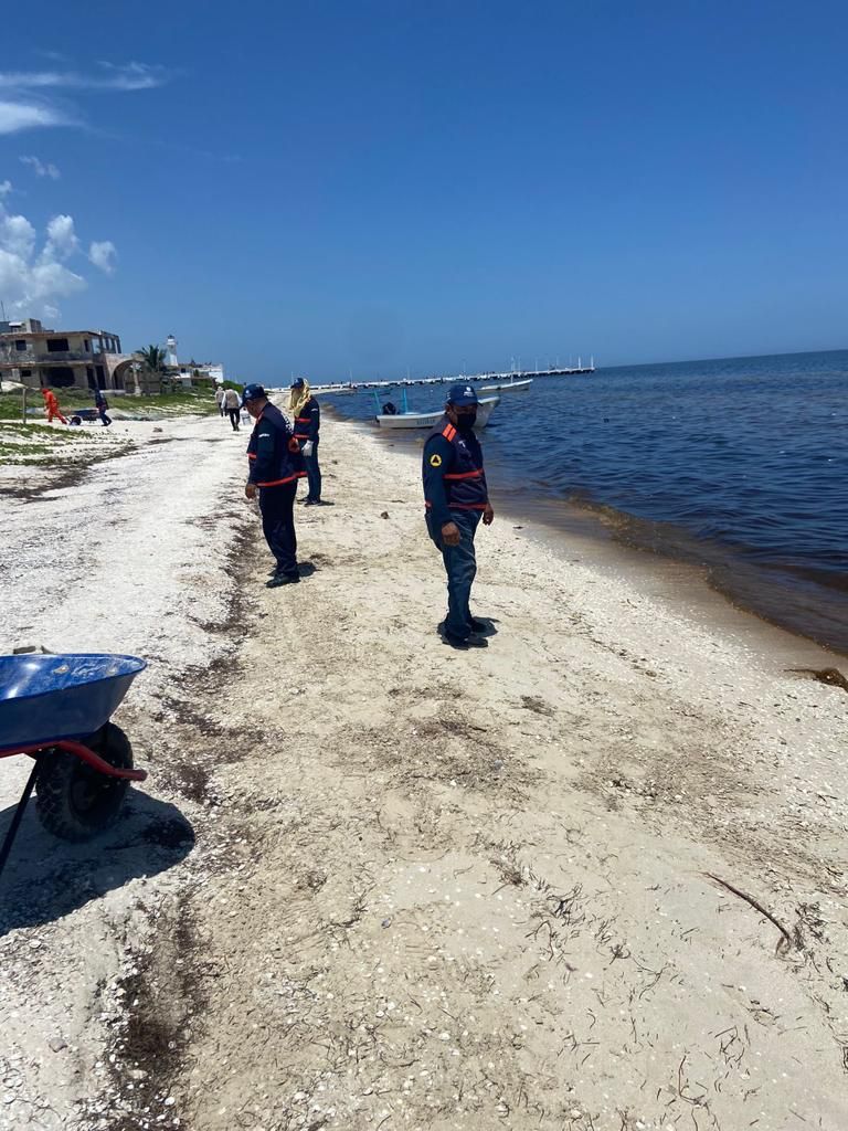 Personal del Gobierno del Estado continúa con las labores de limpieza, a las que hoy domingo se suma elementos del Ejército Mexicano y veraneantes. / En un tramo de 4 kilómetros en el Puerto de San Benito, se recogieron 1,150 kilos de especies marinas que arribaron a la costa.