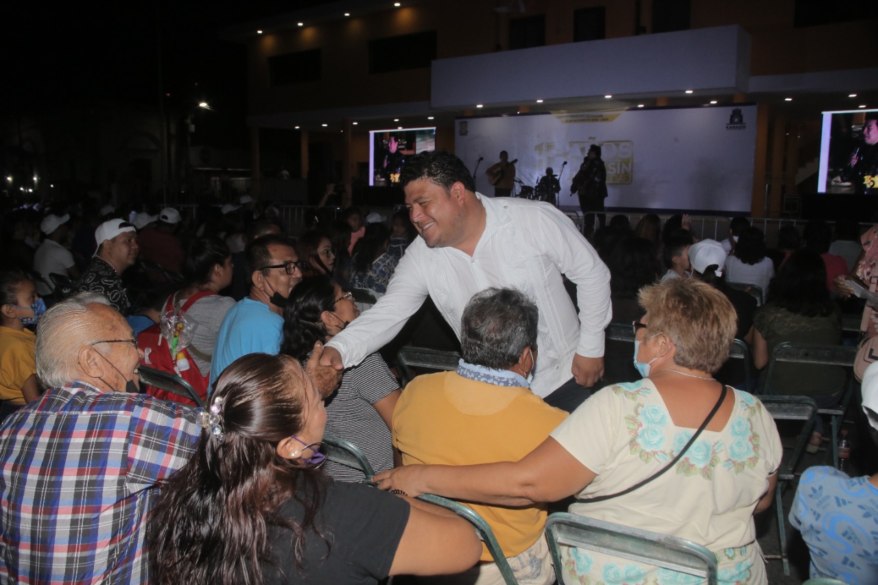 De esta manera, familias kanasinenses se dieron cita al palacio municipal y parque principal para disfrutar de una noche de espectáculos artísticos y culturales.