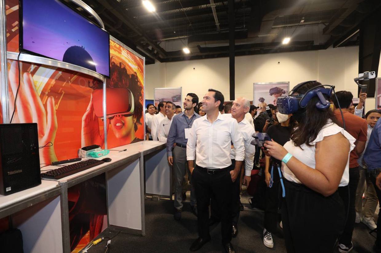 Previo a un recorrido por los stands del Congreso, el Gobernador puso en marcha el encuentro que acercará a la juventud yucateca a las megatendencias globales de emprendimiento, inteligencia artificial, blockchain, ciberseguridad, gaming y realidad extendida.