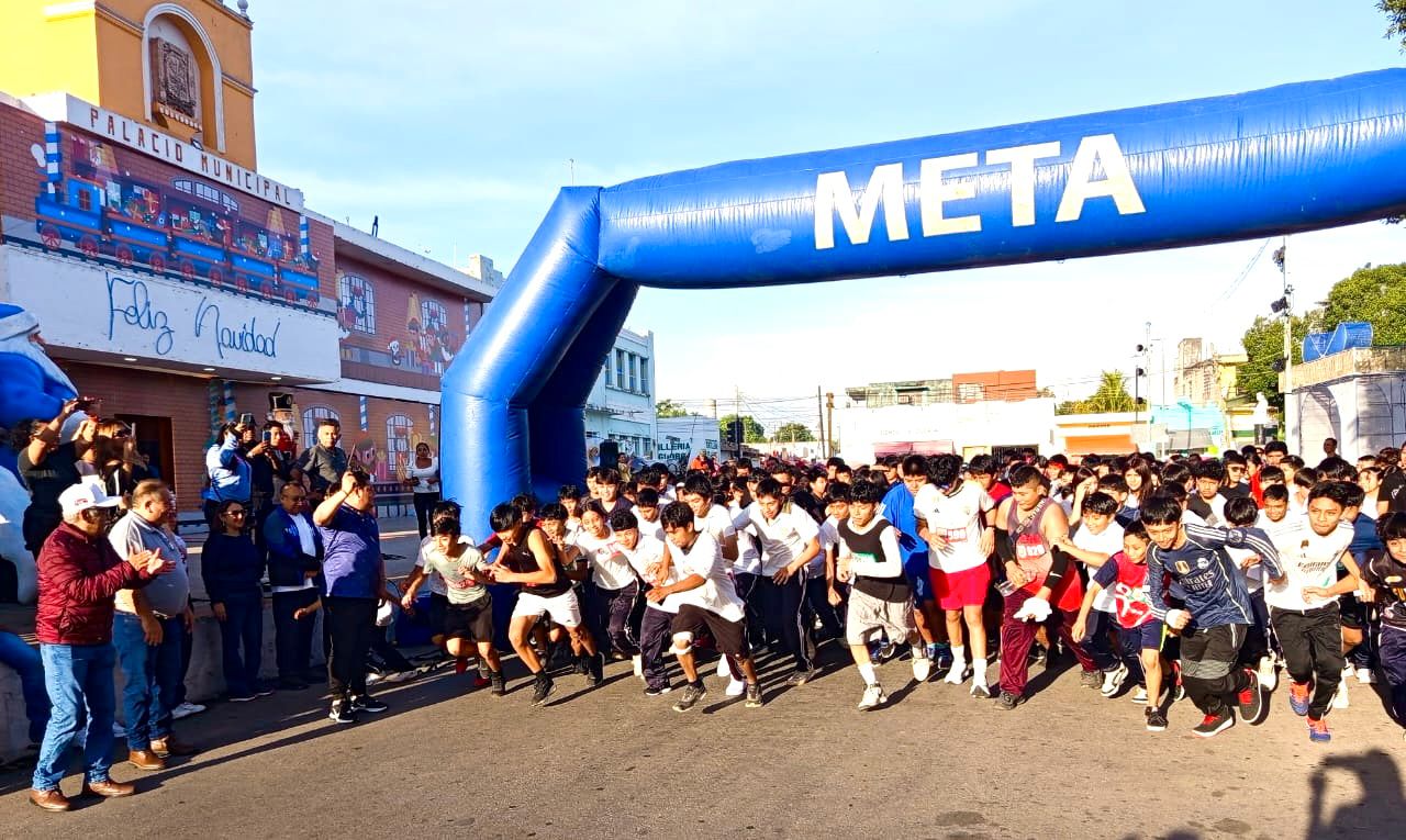 El alcalde Edwin Bojórquez, acompañado del director del plantel, Javier Pinto Brito, así como de la regidora de Educación Imadelmi Erosa Sauri, la Señorita Aniversario Sofía Herrera, fue el encargado de dar el disparo de salida para los más de 250 estudiantes que participaron en la carrera.