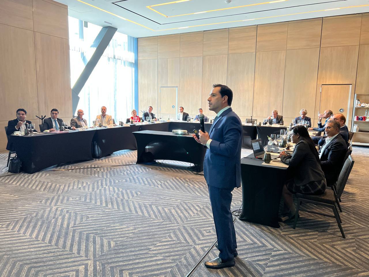 En ese marco, el Gobernador presentó las ventajas de invertir en Yucatán y lo que ha ocurrido para su transformación en un mejor estado creciendo su economía 15 veces más que la nacional y con un récord estatal con la llegada de 3.2 millones de turistas.