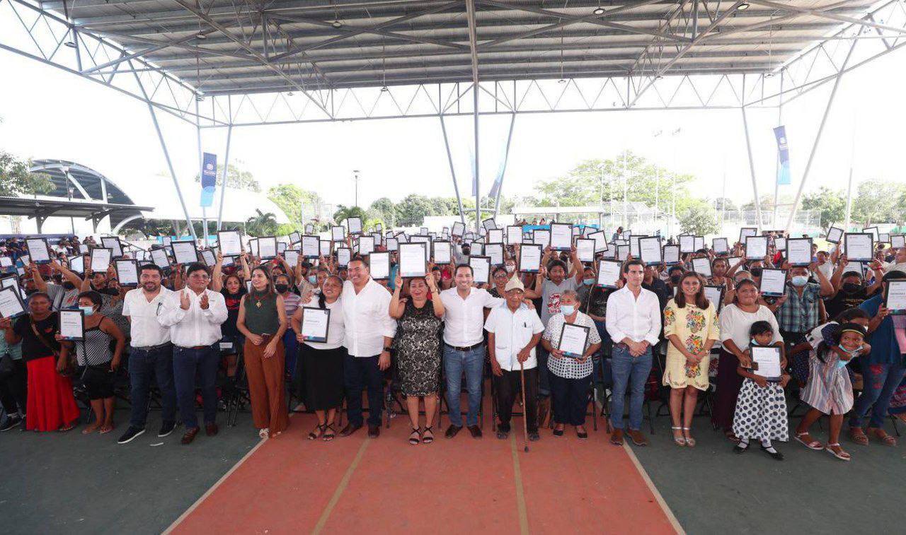 Un total de 774 familias yucatecas de nueve asentamientos humanos establecidos al sur de la ciudad de Mérida recibieron del Gobernador Mauricio Vila Dosal su certificado del programa Certeza Patrimonial, con el que ven regularizada su situación y ahora podrán vivir de forma más digna, segura y con la certidumbre de que tienen un hogar propio.