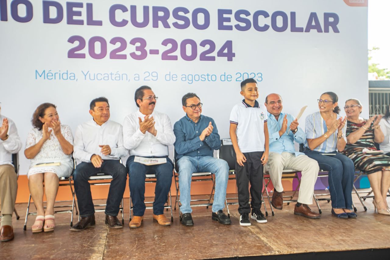 En el marco del inicio oficial de curso escolar 2023-2024, que encabezó el secretario de Educación Liborio Vidal Aguilar y el titular de la Unidad de Actualización Normativa, Legalidad y Regulación jurídica de la Secretaría de Educación Pública, Carlos Alberto Puga Bolio, en representación de la secretaria de Educación Pública, Leticia Ramírez Amaya, Vidal Aguilar, reafirmó el compromiso del Gobierno de Yucatán para garantizar una educación de calidad para las presentes generaciones como base del desarrollo de la entidad.