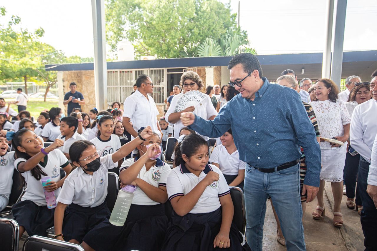 Por eso me dio mucho gusto platicar con el director y saber que, en esta escuela, no hace falta ningún docente, que cuentan con internet como las 1,833 escuelas conectadas a Yucatán Digital y que ahora van a recibir los beneficios del programa Impulso Escolar que impulsa el gobernador Mauricio Vila como apoyo a la economía familiar, destacó el funcionario ante madres, padres de familia, líderes de sindicatos al servicio de la educación, jefes de sector y supervisores escolares.