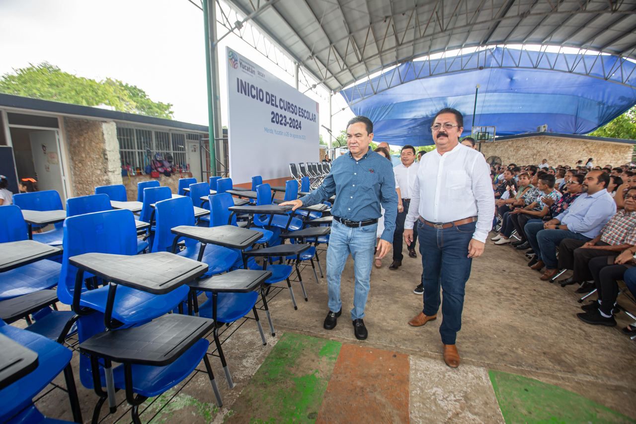 En el marco del inicio oficial de curso escolar 2023-2024, que encabezó el secretario de Educación Liborio Vidal Aguilar y el titular de la Unidad de Actualización Normativa, Legalidad y Regulación jurídica de la Secretaría de Educación Pública, Carlos Alberto Puga Bolio, en representación de la secretaria de Educación Pública, Leticia Ramírez Amaya, Vidal Aguilar, reafirmó el compromiso del Gobierno de Yucatán para garantizar una educación de calidad para las presentes generaciones como base del desarrollo de la entidad.