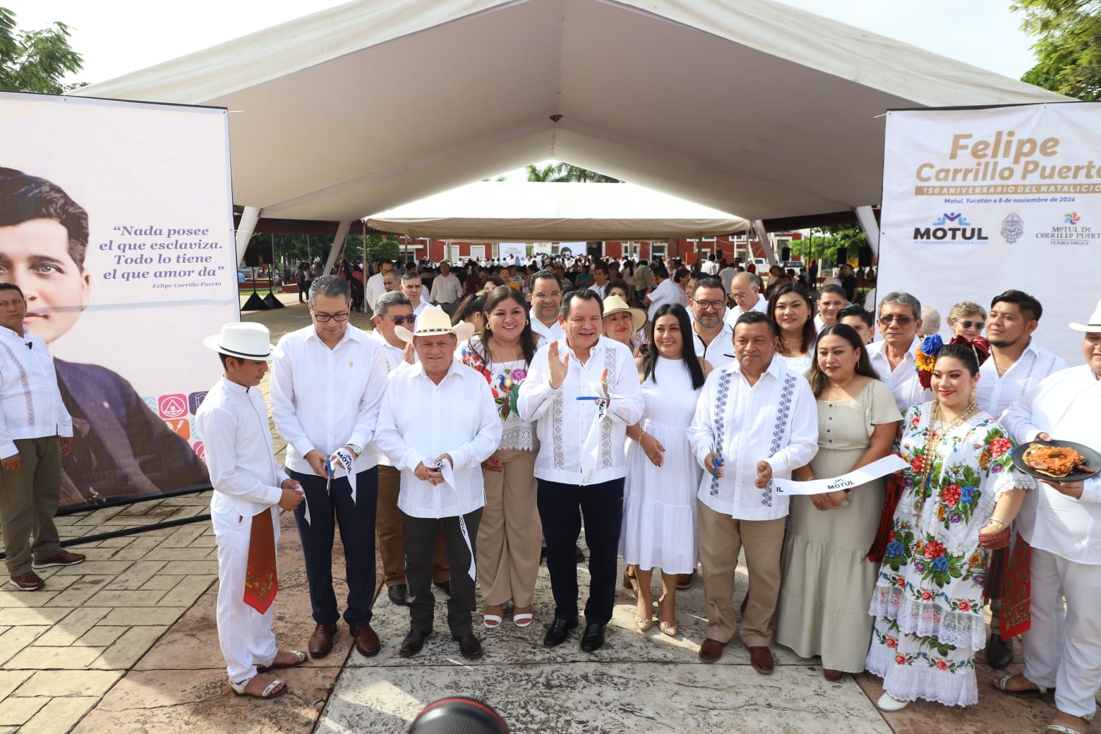 El Presidente de la Junta de Gobierno y Coordinación Política del Congreso del Estado, el Diputado Wilmer Monforte Marfil junto al Diputado del Distrito XV, Eric Quijano González acompañaron al Gobernador del Estado, Joaquín Díaz Mena a la conmemoración del 150 aniversario del natalicio del ilustre Felipe Carrillo Puerto, en el municipio de Motul, Yucatán.
