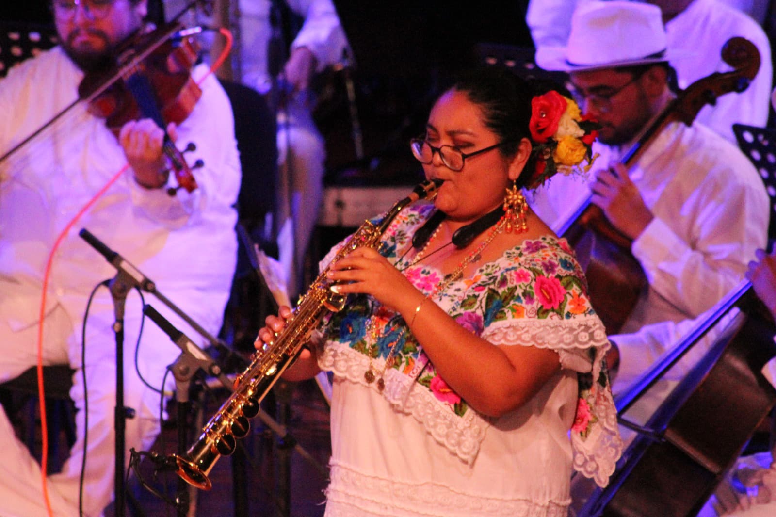 El programa lo complementaron las actuaciones de las y los instrumentistas de la OTY con Peregrina, a cargo de la saxofonista María José Chi, Bar El destino, con Rodolfo Santos y Piel de barro, en la voz de Karen Rosales, mientras que Jimena y Andrea Herrera interpretaron, en violín y flauta, una selección de canciones con temas de “Coqui” Navarro.