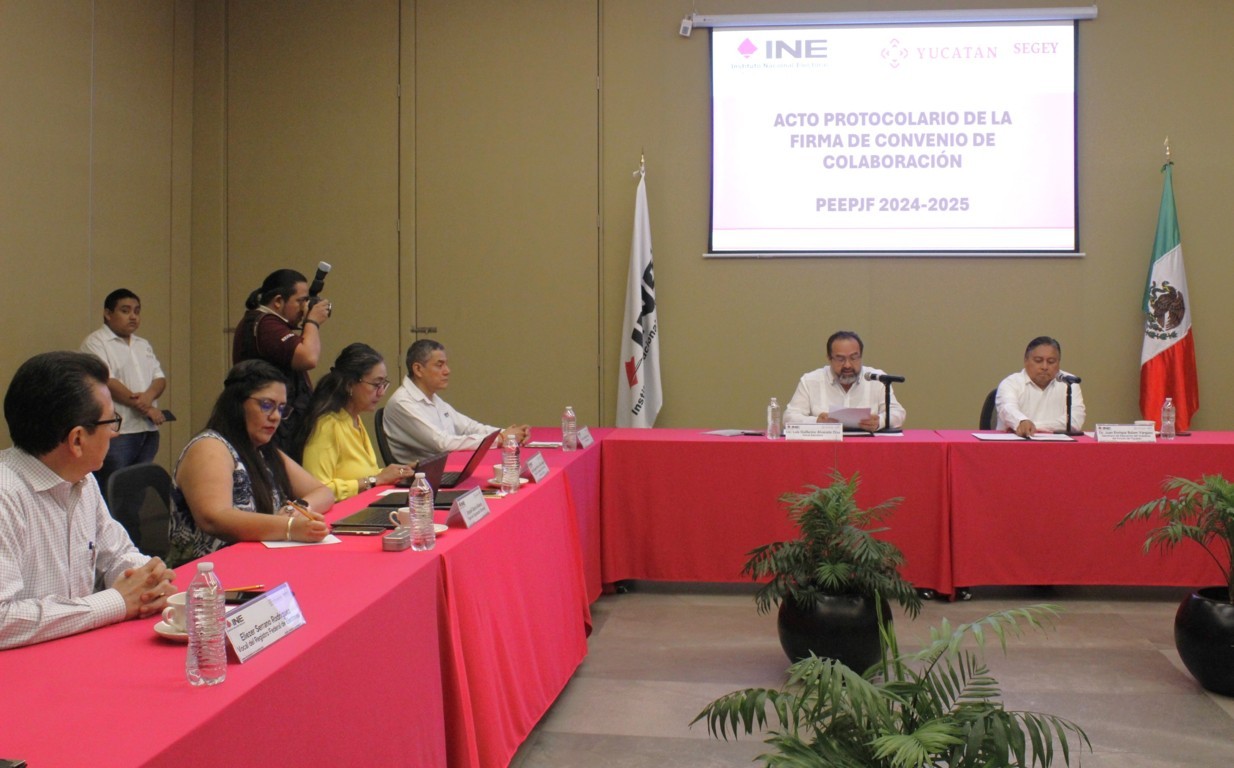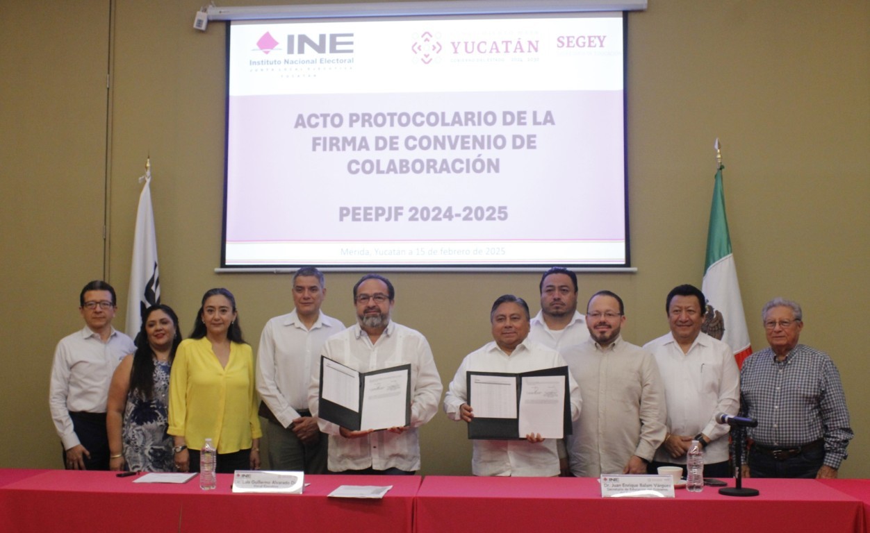 El Instituto Nacional Electoral (INE) en Yucatán y la Secretaría de Educación del Gobierno del Estado de Yucatán (SEGEY) signaron un convenio de colaboración con el objeto de permitir el uso de aulas, espacios y en su caso, el mobiliario de las escuelas donde se instalarán casillas con motivo del Proceso Electoral Extraordinario del Poder Judicial de la Federación 2024-2025.