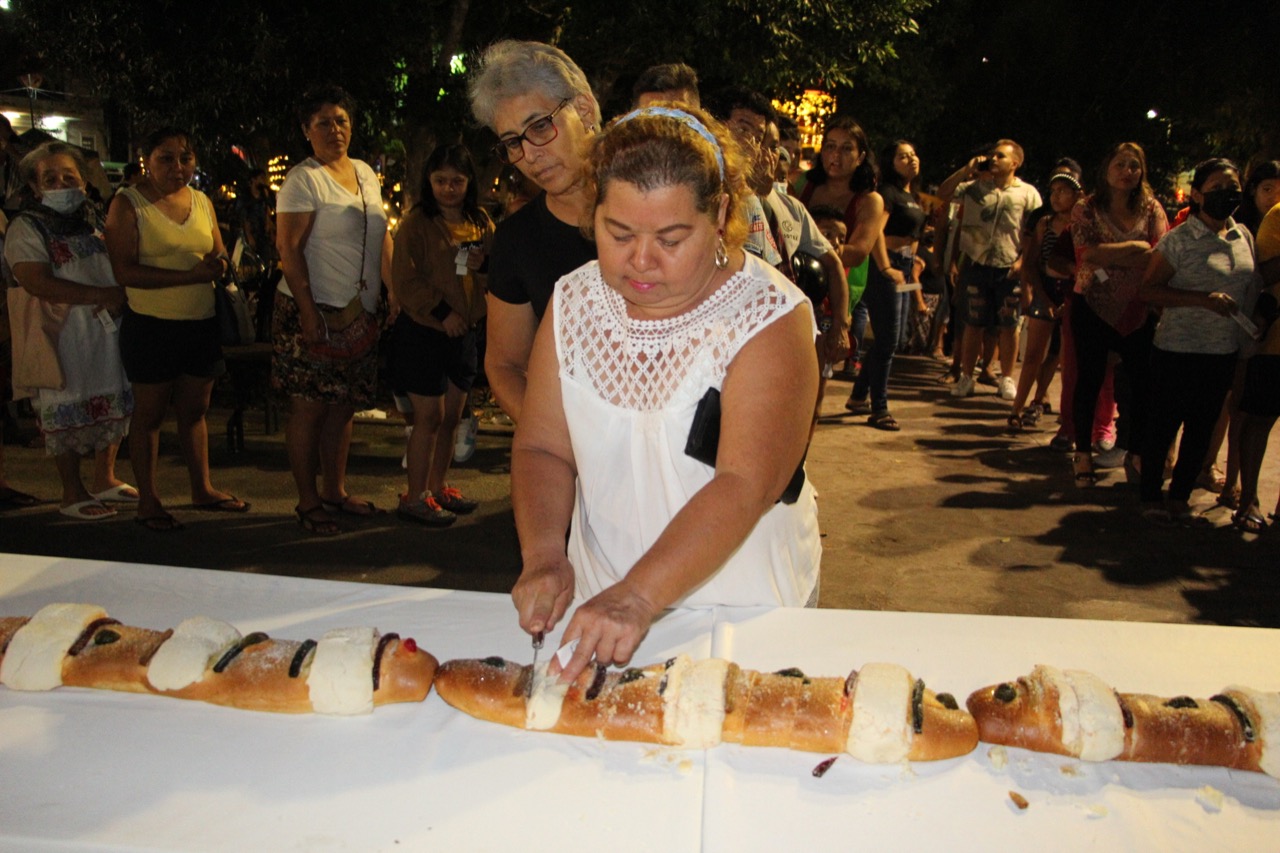 Con el objetivo de preservar nuestras tradiciones se realizó el tradicional corte de la Rosca de Reyes en la explanada del parque principal de la ciudad de Umán que contaba con una dimensión de 50 metros para el disfrute de todos los asistentes.