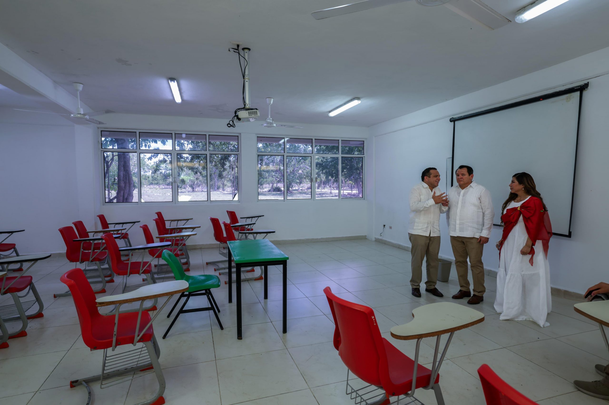 Acompañado por la presidenta honoraria del Sistema para el Desarrollo Integral de la Familia (DIF) Yucatán, Mtra. Wendy Méndez Naal, el Gobernador detalló que el proyecto no solo contempla la ampliación de la infraestructura educativa, sino también su equipamiento, al dotarla de 180 nuevas sillas, pantallas con proyector, pintarrones y sistemas de climatización para cada salón.