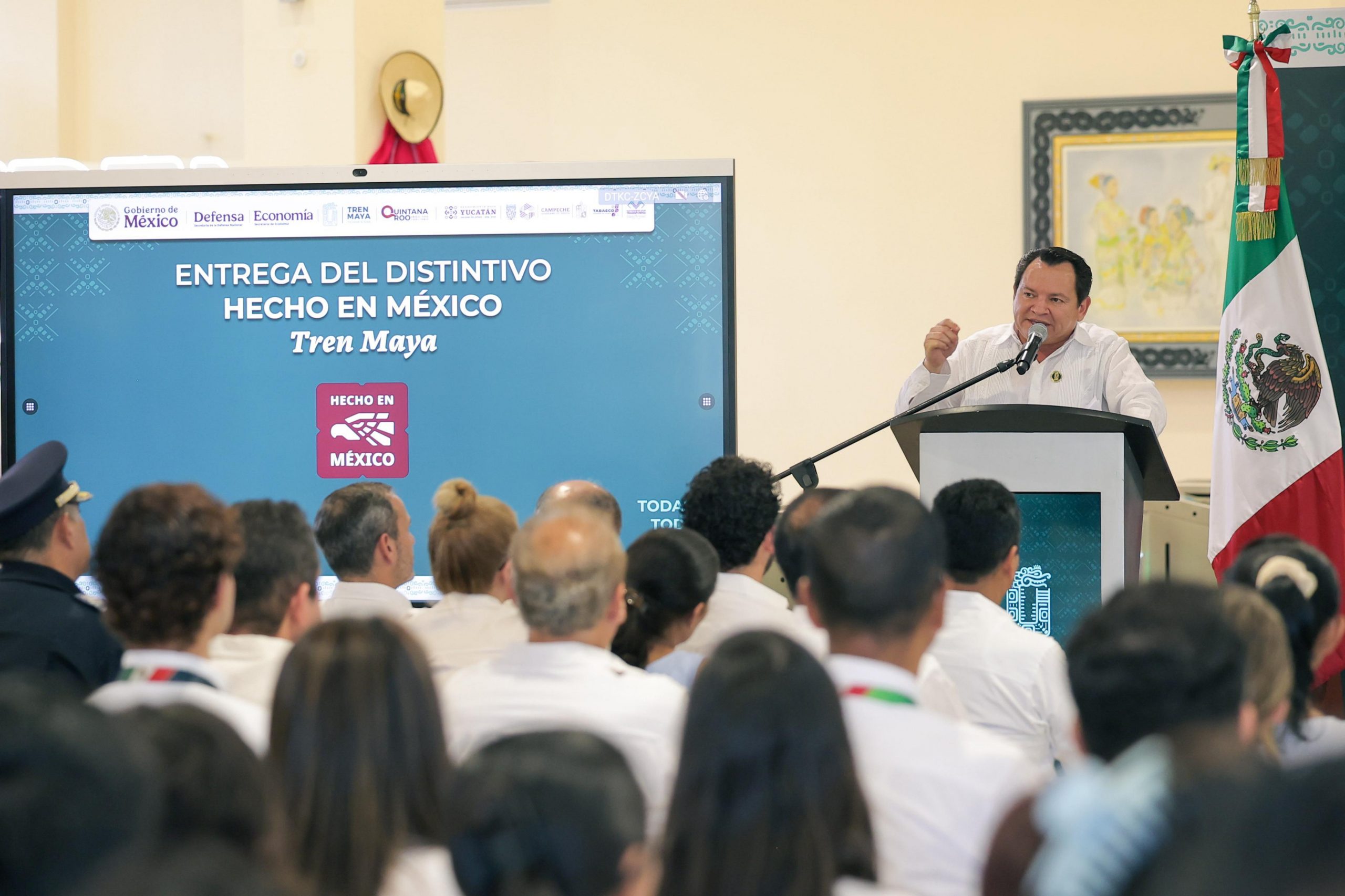 El Gobernador Joaquín Díaz Mena atestiguó la entrega del distintivo “Hecho en México” al Tren Maya, otorgado por la Secretaría de Economía como reconocimiento a una obra ferroviaria construida con talento y manos mexicanas.
