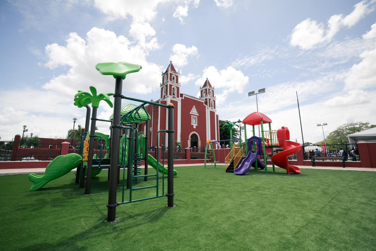 Las obras incluyeron nueva iluminación, mobiliario urbano, drenaje pluvial, pasto sintético y módulos de juegos infantiles, con una inversión de 2.4 millones de pesos.