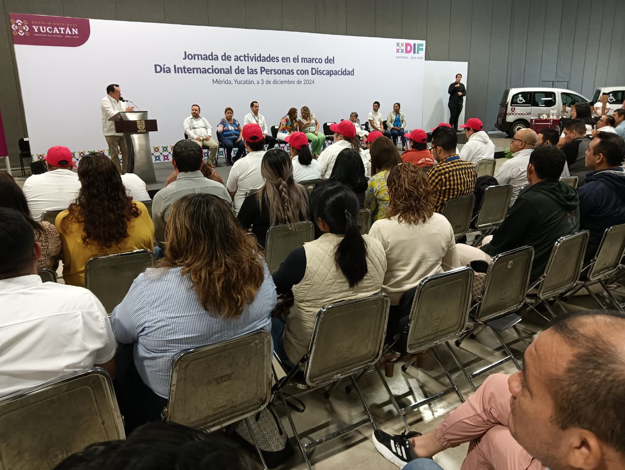 En el marco del Día Internacional de las Personas con Discapacidad, Díaz Mena y la presidenta del DIF Yucatán, la maestra Wendy Méndez Naal, entregaron aparatos de movilidad y unidades de traslado adaptadas para este sector de la población.