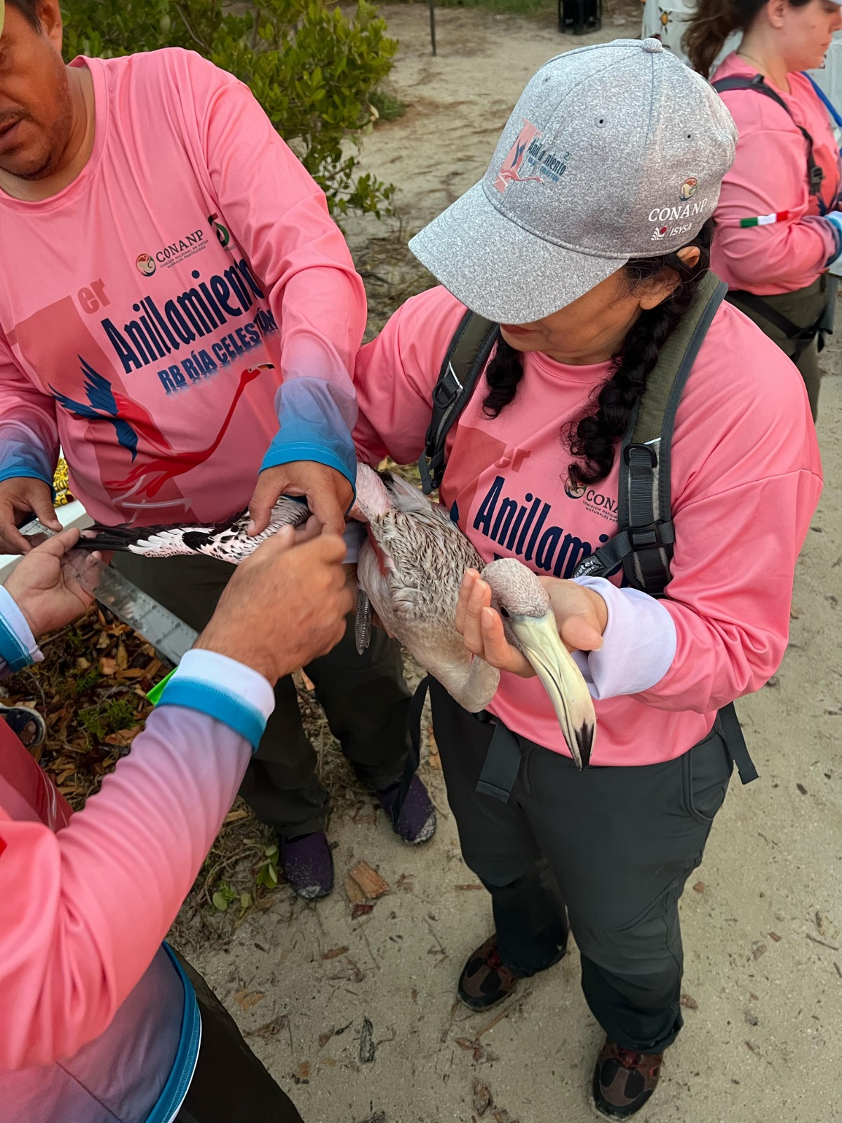 En coordinación con la Conanp, se realizaron jornadas de anillamiento en Ría Lagartos y Ría Celestún, acción que permitirá reforzar el monitoreo y la protección de esta especie emblemática