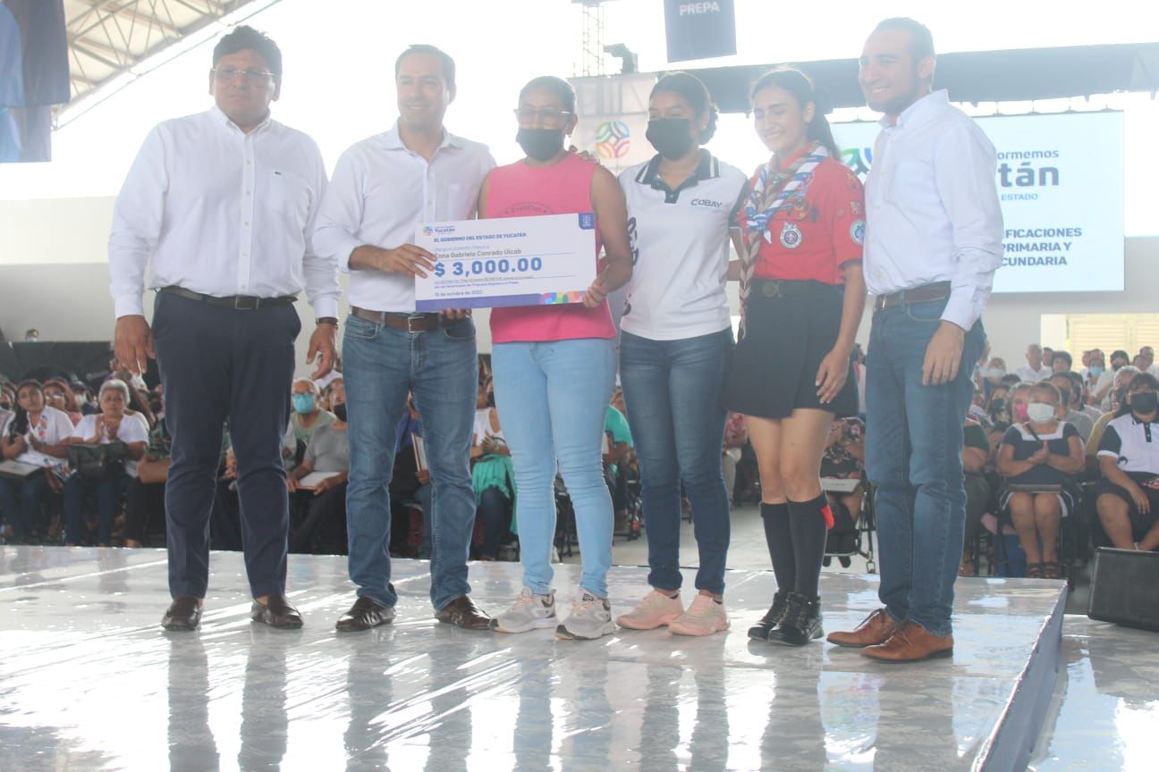 De igual forma a través del Programa “Regresa a tu Prepa” 24 adolescentes del Colegio de Bachilleres del Estado de Yucatán (COBAY), plantel Umán obtuvieron un beca de 3,000 pesos bimestrales para que puedan retornar a su preparatoria y continuar con sus estudios.