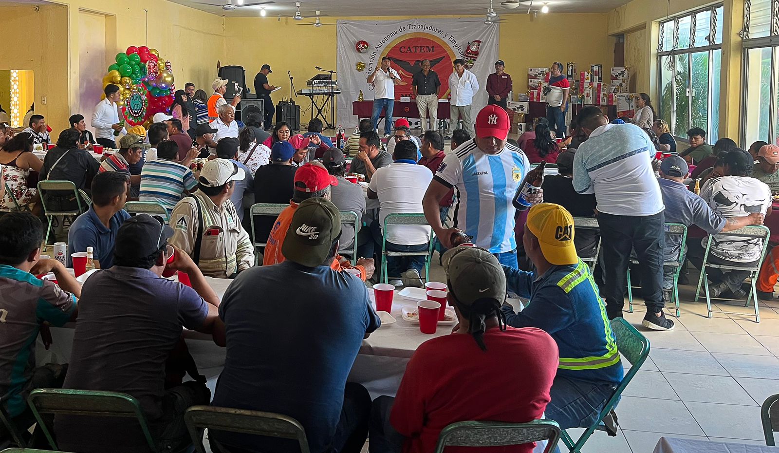 Con un ambiente de alegría y entusiasmo los afiliados de la Catem festejaron su posada navideña en compañía del líder sindical José Manuel Peniche Marenco
