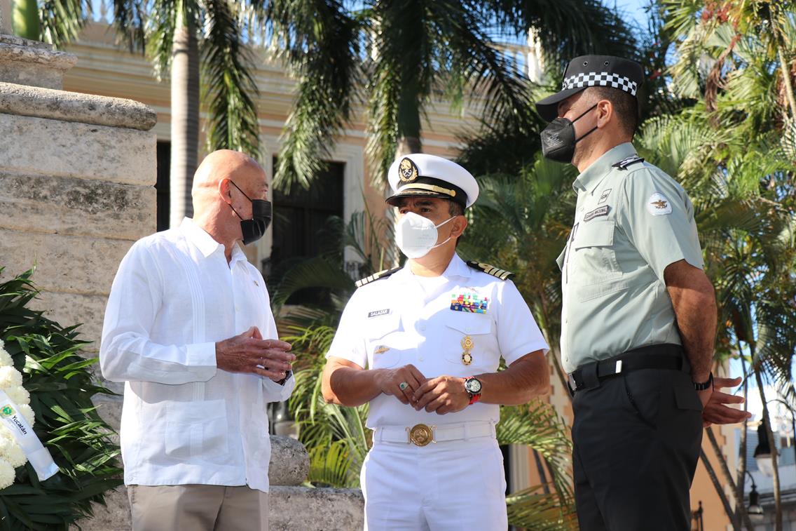 La trascendencia del pensamiento y obra del general Manuel Cepeda Peraza fue recordada con una ofrenda floral y guardia de honor al pie de su efigie en el Centro Histórico de Mérida.