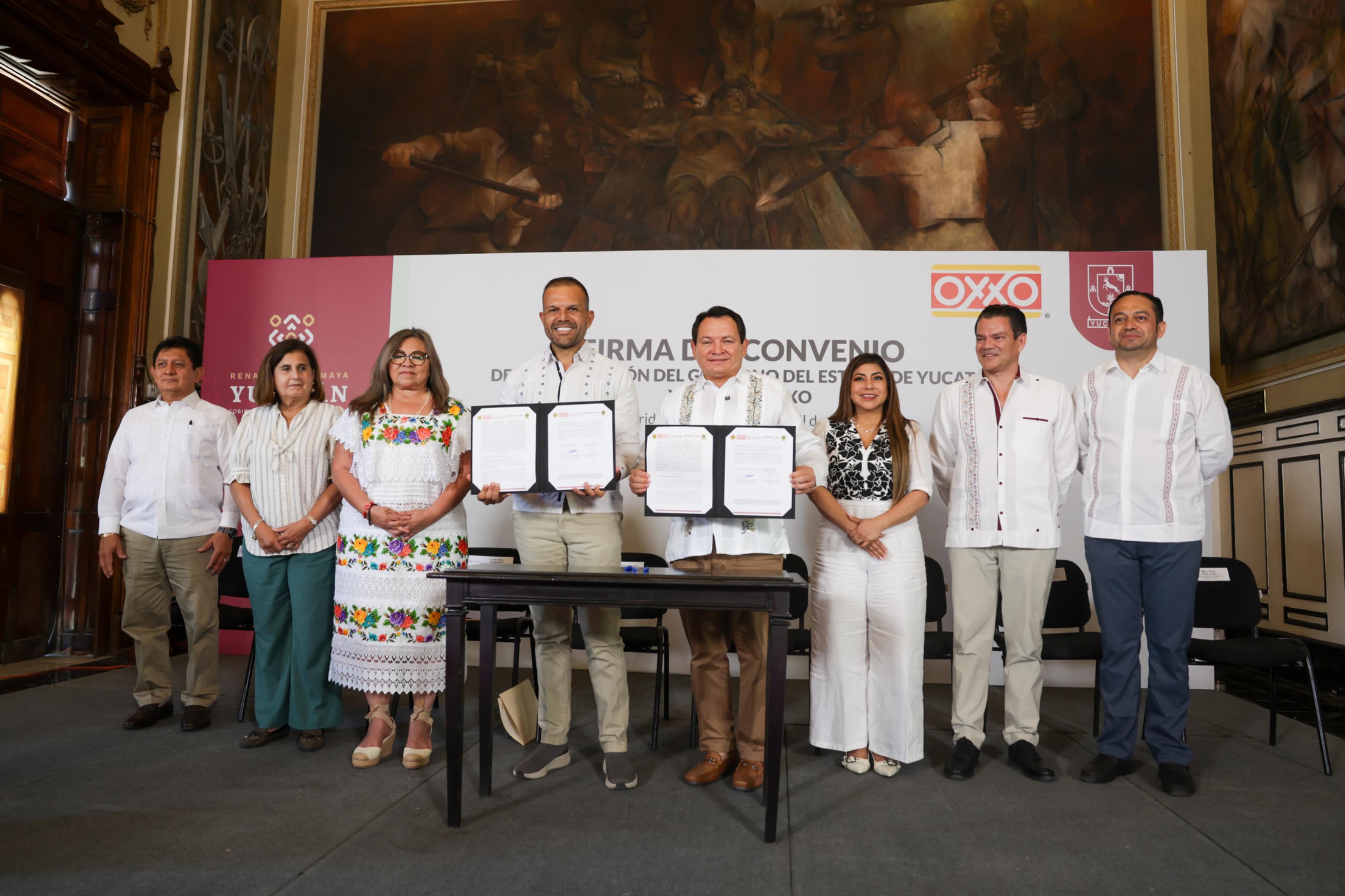 El Gobernador de Yucatán, Joaquín Díaz Mena firmó un convenio de colaboración con Grupo Oxxo para el combate de la violencia de género, apoyo a policías y venta de artículos de productores yucatecos.