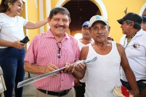 En Calotmul, donde el 35% de los habitantes viven del campo, el Senador por Yucatán entregó herramientas y puso a disposición las Clínicas Marín