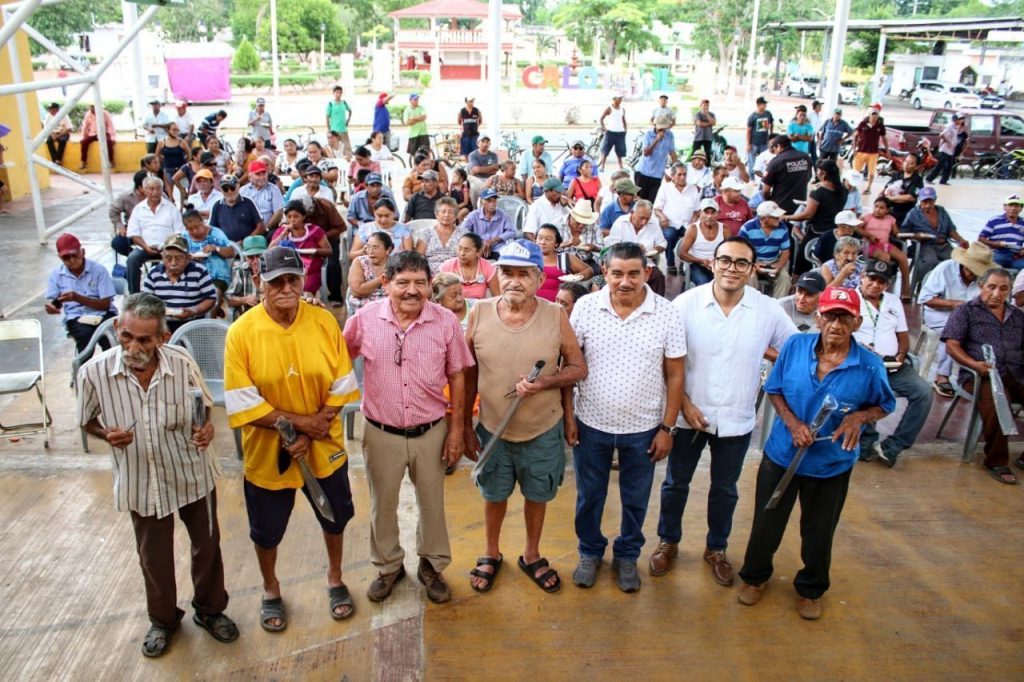 En Calotmul, donde el 35% de los habitantes viven del campo, el Senador por Yucatán entregó herramientas y puso a disposición las Clínicas Marín