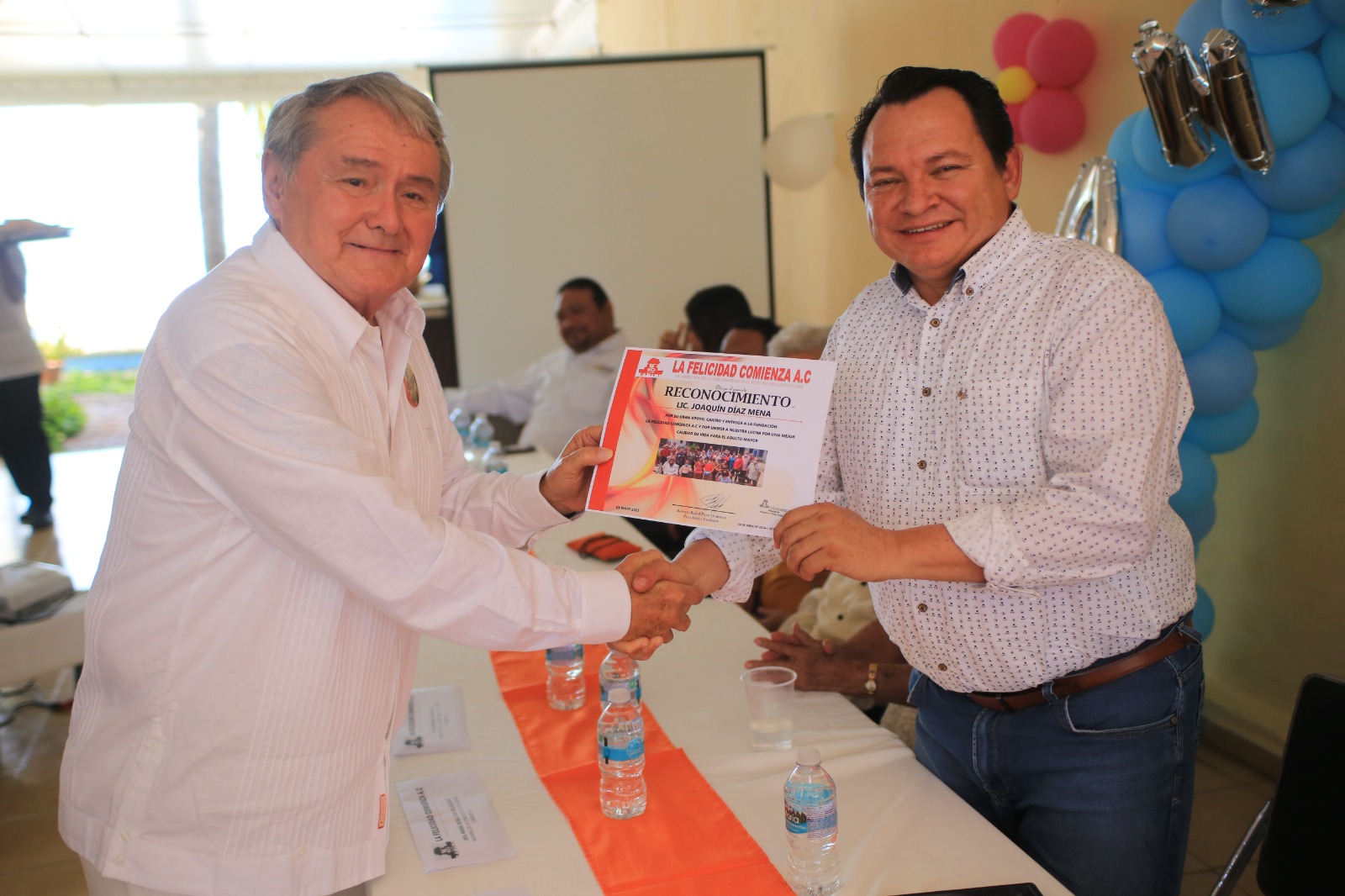 El representante en el estado del Presidente Andrés Manuel López Obrador y Delegado del Gobierno Federal, Mtro. Joaquín Díaz Mena, fue invitado de honor al noveno aniversario de la asociación civil “La Felicidad Comienza”, presidida por Roberto Rafael Pinto Ontiveros e integrada por personas adultas mayores.