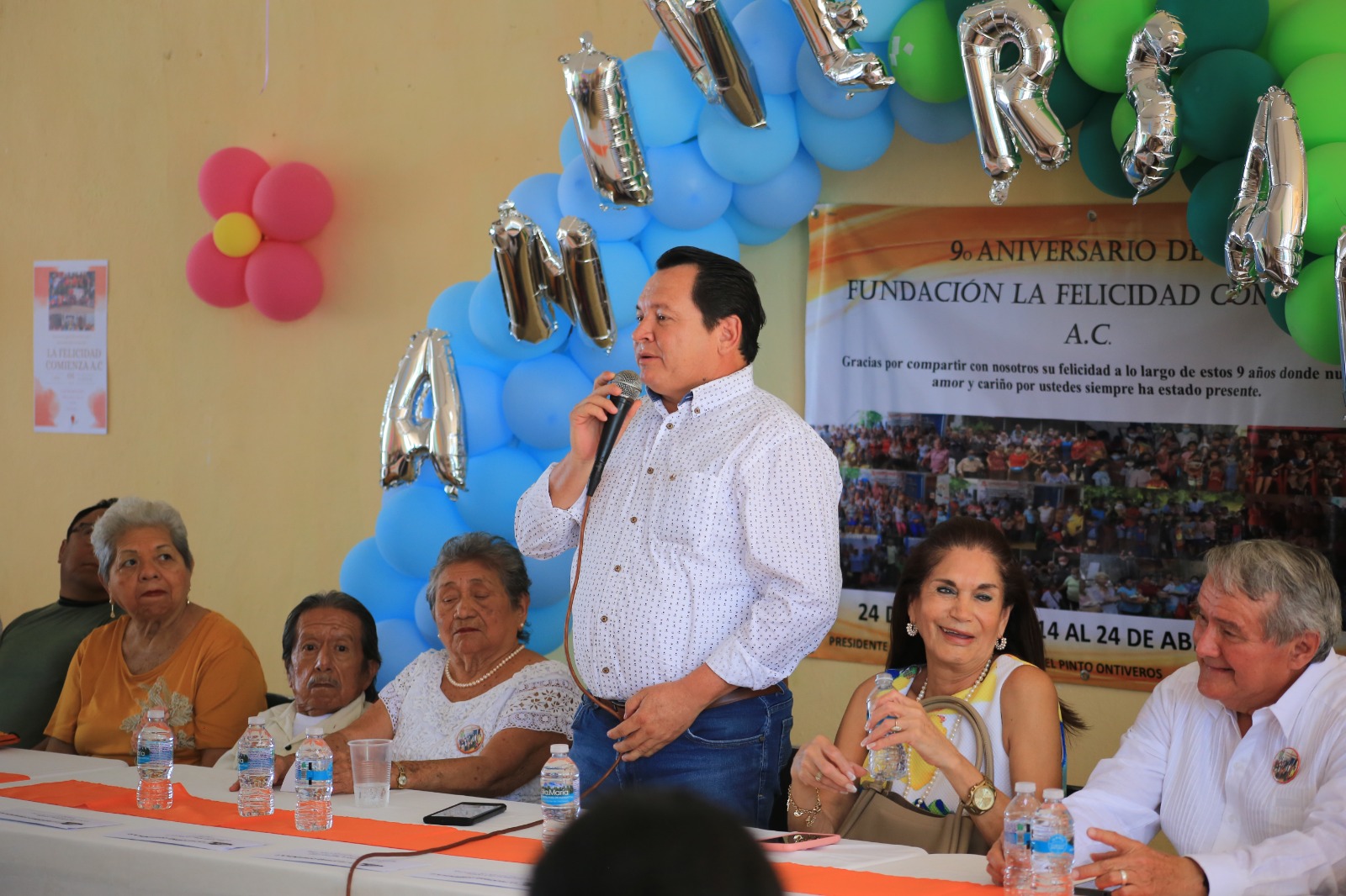 El representante en el estado del Presidente Andrés Manuel López Obrador y Delegado del Gobierno Federal, Mtro. Joaquín Díaz Mena, fue invitado de honor al noveno aniversario de la asociación civil “La Felicidad Comienza”, presidida por Roberto Rafael Pinto Ontiveros e integrada por personas adultas mayores.