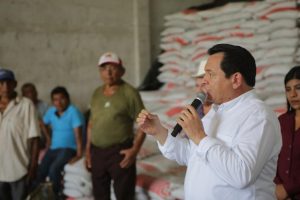 Sumar en apoyo al esfuerzo que las mujeres y hombres del campo realizan día a día trabajando sus tierras para hacerlas más productivas es el objetivo del programa “Fertilizantes para el Bienestar”, afirmó Joaquín Díaz Mena representante del Presidente Andrés Manuel López Obrador en el estado, durante la entrega de este apoyo a productores que acudieron al centro distribución ubicado en el municipio de Sucilá. Este operativo de entrega de fertilizantes se realiza en estrecha coordinación con los representantes de Segalmex, Lino Reyes y de la Sader Yucatán, María del Refugio Medina, para que a través de 14 centros de distribución ubicados en diversos municipios del interior del estado sean atendidos más de 30 mil productores yucatecos.Estuvieron presentes en el evento por parte de la Sader el jefe de distrito, Manuel Gómez; el Presidente de la Asociación Ganadera de Sucilá, Vicente Medrano; en representación de los beneficiarios del programa “Sembrando Vida”, Pedro Chuc; la Subdelegada regional de Programas de Bienestar, Alondra Alvarado y el Coordinador del programa “Pensión para el Bienestar de las Personas Adultas Mayores”, Wilmer Monforte. Díaz Mena reiteró el compromiso de avanzar hacia la soberanía alimentaria, la cual es uno de los objetivos del Gobierno del Presidente Andrés Manuel López Obrador; por ello a través
