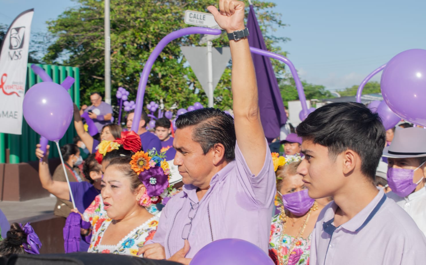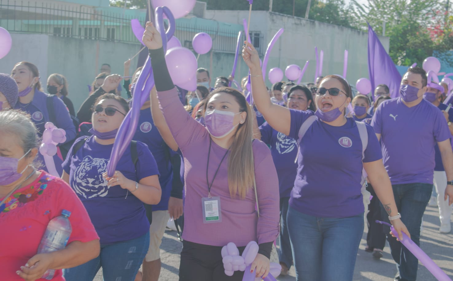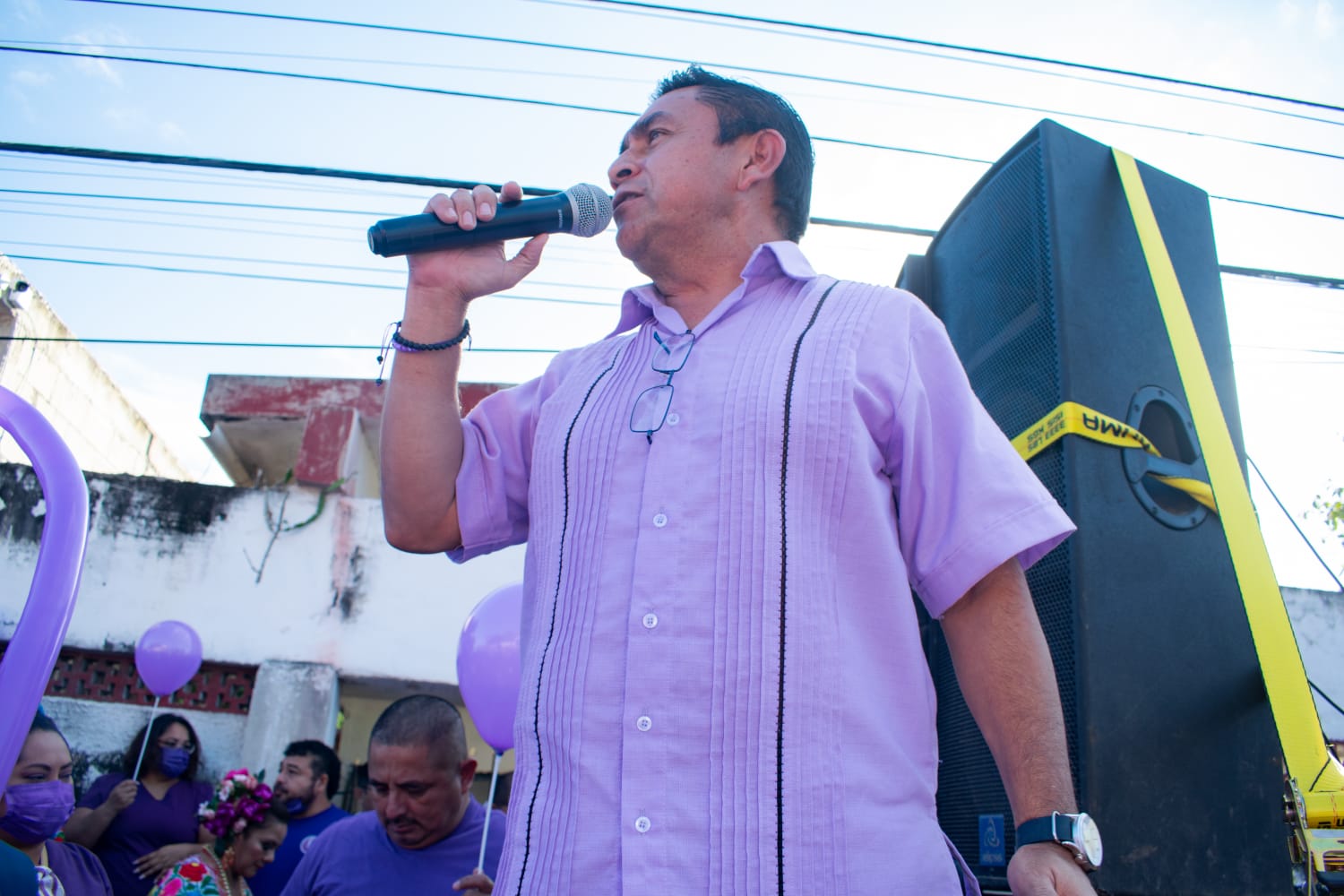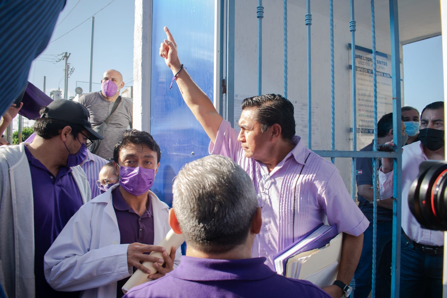Al son de la jarana; la batucada y el fondo pintado de morado por cientos de simpatizantes, Javier Campos Rosado llevo a cabo su inscripción como candidato a Secretario General del Sindicato Nacional de Trabajadores del Seguro Social(SNTSS).