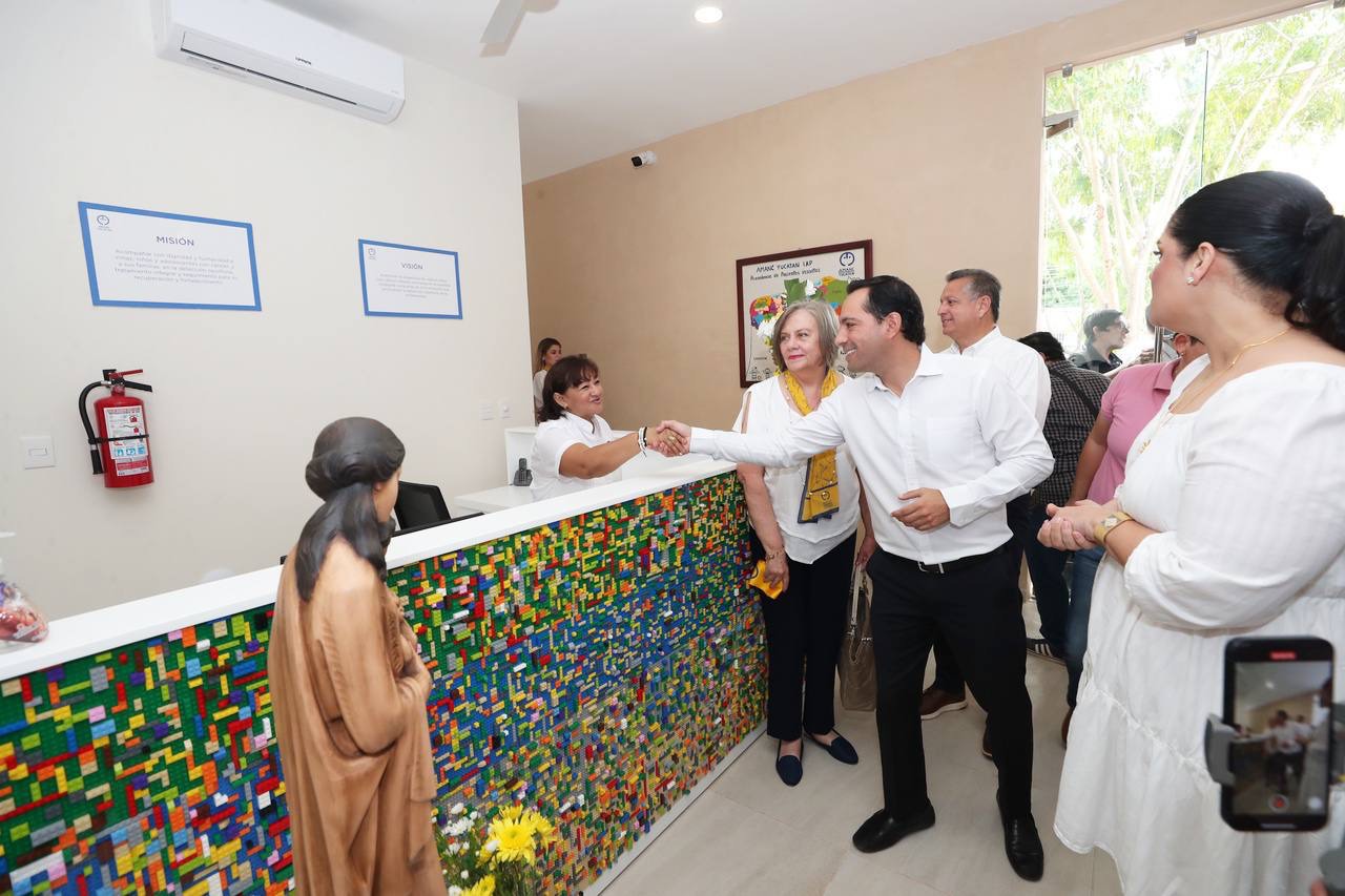 Junto con la presidenta Nacional de AMANC, María de Guadalupe Alejandre Castillo y el Alcalde de Mérida, Alejandro Ruz Castro, el Gobernador realizó el corte de listón inaugural de este centro que se levantó en un terreno donado por el Gobierno del estado, además de aportar un donativo de 8 millones de pesos del total de 23 que se invirtieron en el lugar.