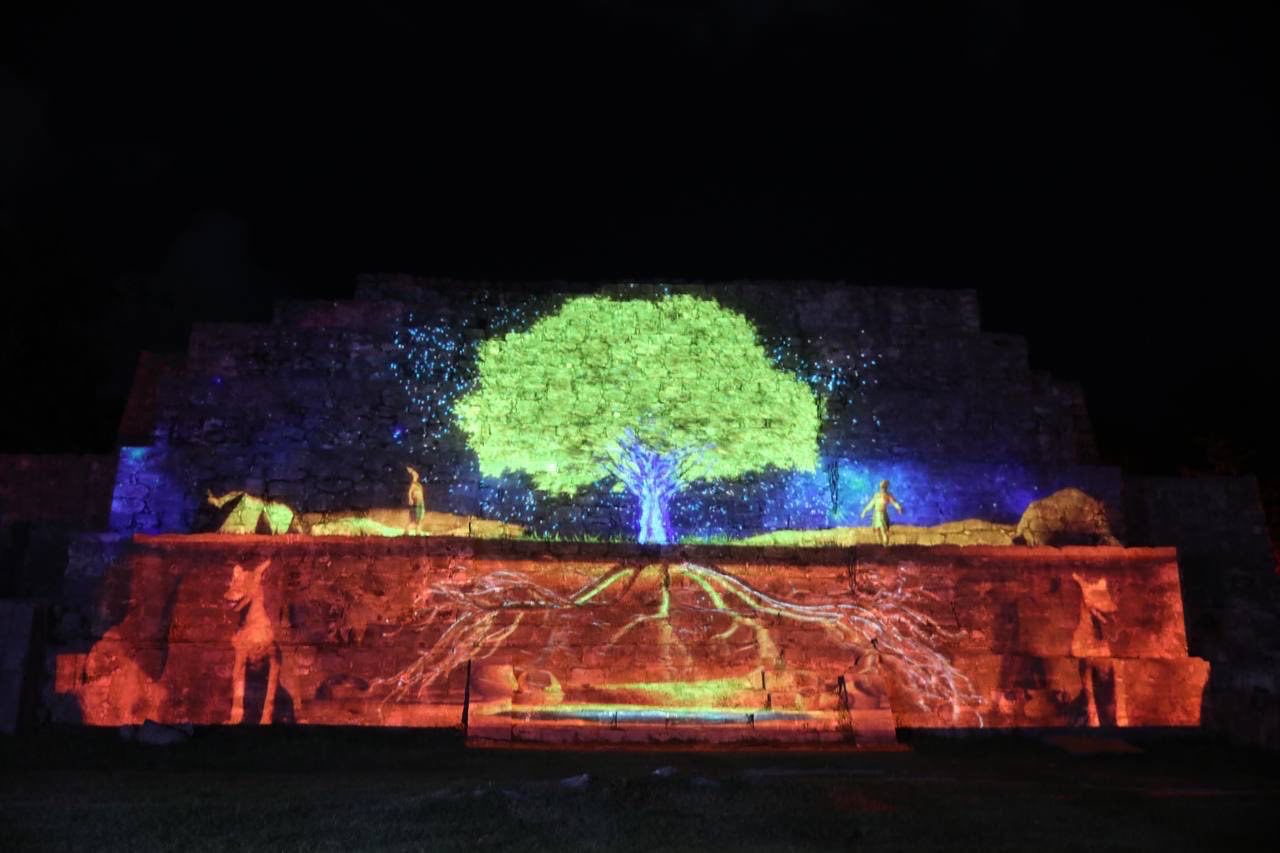 En este proyecto se emplean 9 proyectores con tecnología láser, además de más de 100 lámparas que iluminan los senderos y dan vida a los árboles. El guion fue escrito por arqueólogos yucatecos y supervisado y autorizado por el consejo de arqueología del INAH.