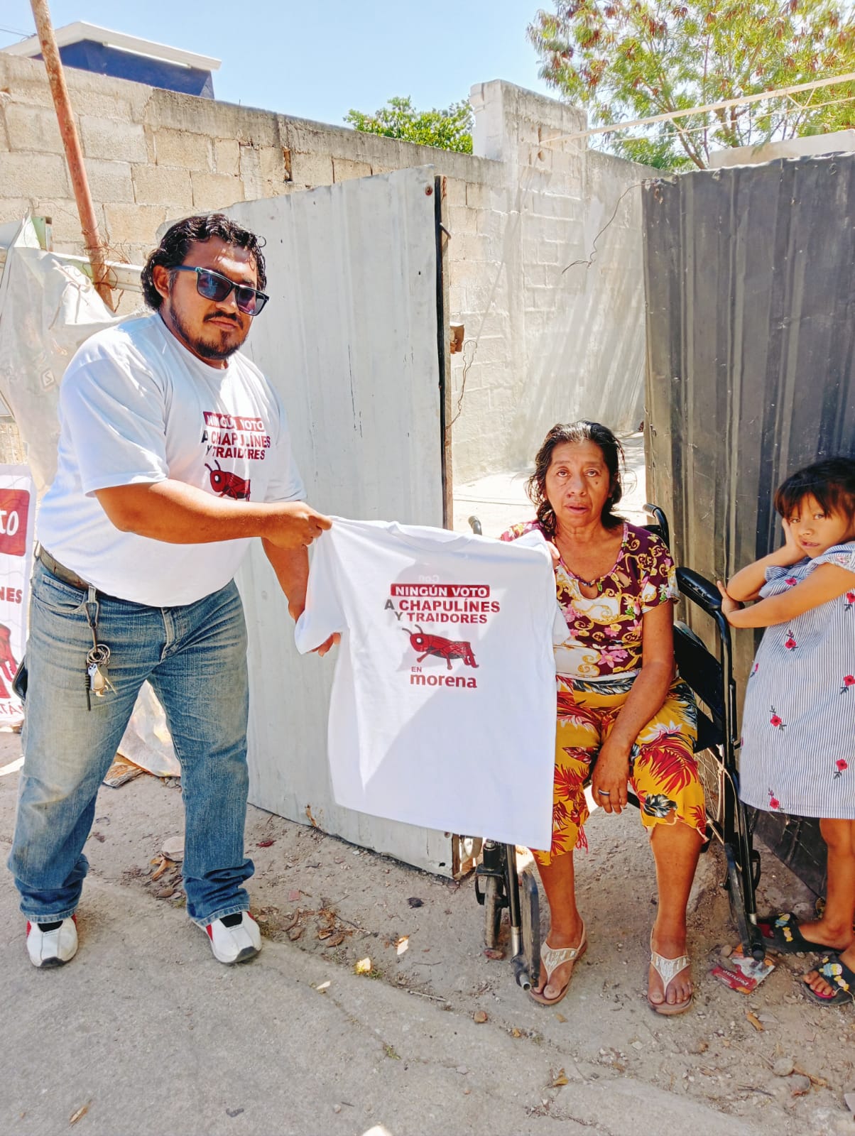 En esta ocasión se distribuyeron entre los transeúntes y automovilistas el periódico “Regeneración Yucatán” donde explica la diferencia entre los morenistas que buscan rescatar al partido como un partido movimiento, y los que ven a Morena como un partido electorero, “ganar por ganar” posicionando a candidatos corruptos, además distribuyeron playeras con la frase “Ni un voto a los Chapulines”.