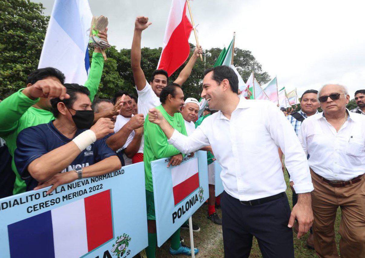El campo de fútbol del Centro de Reinserción Social (Cereso) de Mérida se llenó de emoción, colores y un gran ambiente por el arranque del Mundialito Cereso 2022, única fiesta futbolera que se realiza en un Centro de Reinserción Social en todo México como una réplica del Mundial Qatar 2022, al realizarse partidos en los que participan los internos de este lugar, evento que respalda el Gobernador Mauricio Vila Dosal, como parte de las acciones que impulsa para una buena reinserción social a través del fomento al deporte.