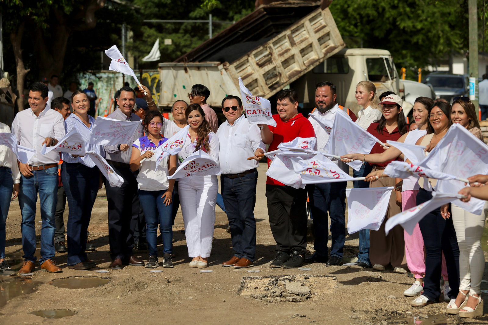 Estos trabajos iniciaron en la colonia Delio Moreno Cantón, y estuvieron presentes la Pta. del DIF Yucatán, maestra Wendy Méndez Naal, la Secretaria de Obras Públicas, Alaine López Brinceño y el director del Instituto de Infraestructura Carretera de Yucatán (Incay), Ángel Pérez Medrano.