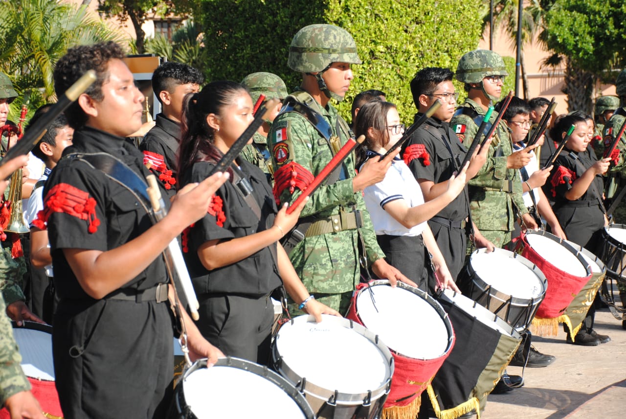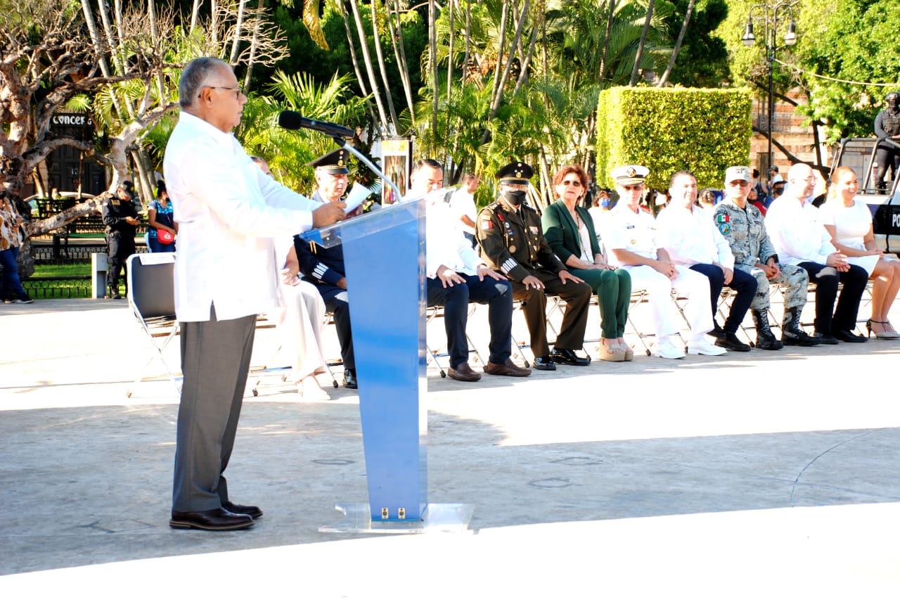 En presencia del comandante de la 32 Zona Militar, general Saúl Luna Jaimes, y el alcalde de Mérida, Renán Barrera Concha, el profesor hizo un recuento del fin del régimen dictatorial de Porfirio Díaz, los principios que impulsó Francisco I. Madero y constituyen la base de nuestra democracia, el ascenso de Victoriano Huerta, los conflictos internos y el surgimiento de las instituciones.