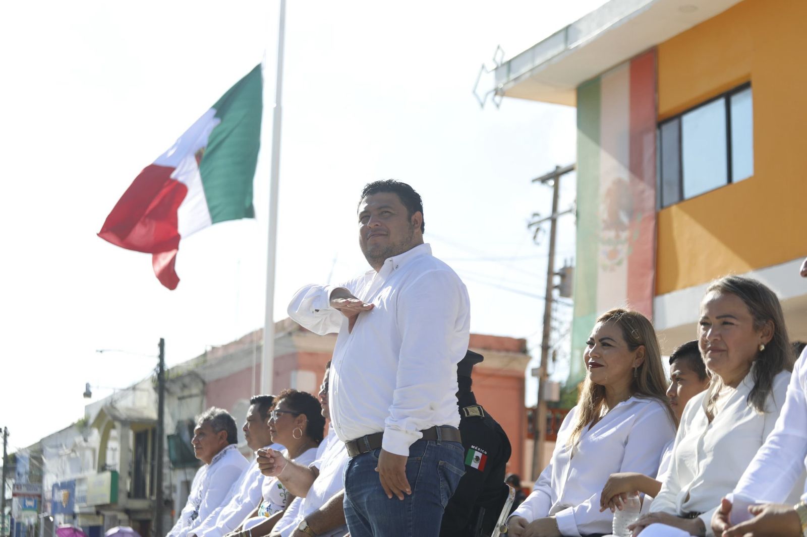 Acompañaron alcalde en esta parada cívico policial, Raquel Balam Rocha, presidenta del DIF; Claudia Gamboa Solís, síndico municipal; Luis Baas Ek, secretario municipal; Susy Rejón Cervantes, regidora; Ángel Herrera, regidor; Manuel Magaña Magaña, regidor; Lucía Herrera Herrera, regidora; César Cardós Vásquez, regidor, entre otros…(OGY)