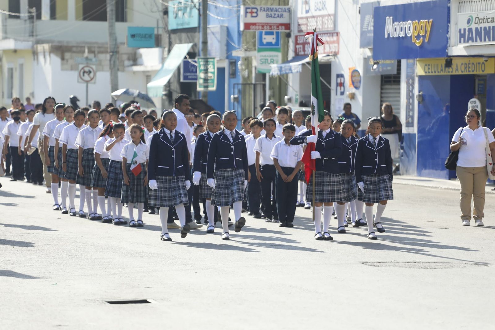 El evento, que tuvo más de una hora de duración, empezó con el izamiento del Lázaro Patrio, acto que encabezaron el alcalde Edwin Bojorquez Ramírez y el director de la Policía Municipal, José Luciano Moo Arceo.