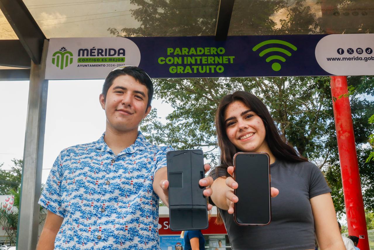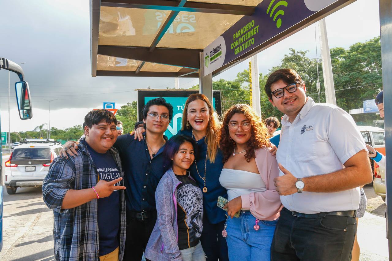 Junto a estudiantes visita uno de los 22 paraderos que ya cuenta con este servicio. Mejoran los espacios de Mérida con justicia social y diseño innovador.