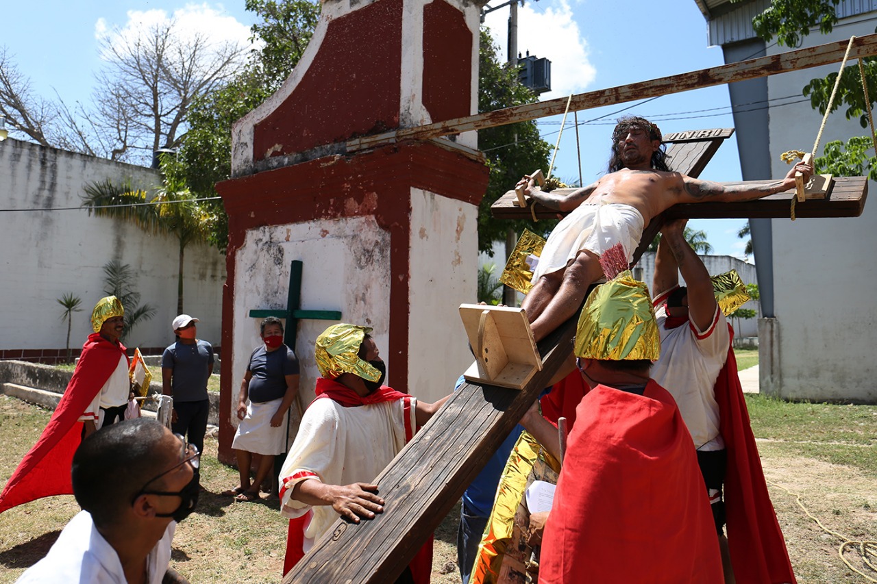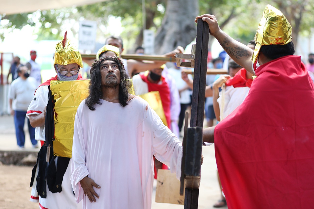En el marco de la Semana Santa, alrededor de 50 personas privadas de la libertad, participaron hoy Viernes Santo en la representación viviente de la Pasion y Muerte de Cristo en el CERESO de Mérida.