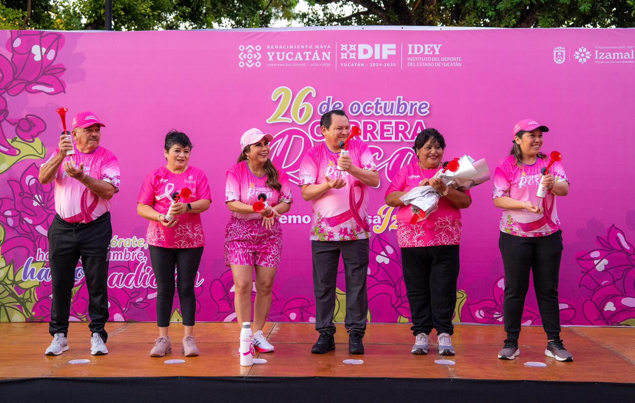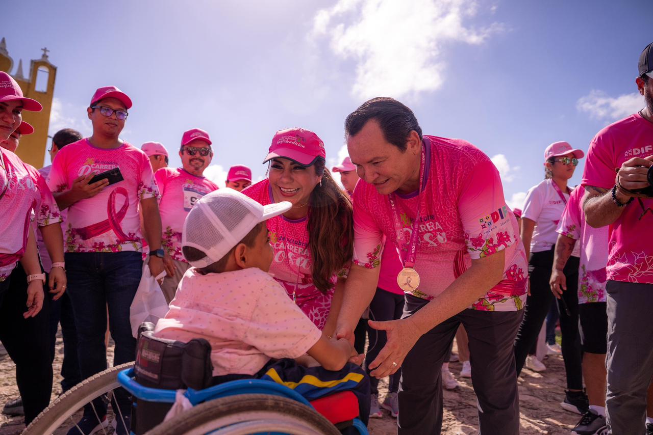 El Gobernador Joaquín Díaz Mena y la Presidenta Honoraria del Sistema para el Desarrollo Integral de la Familia (DIF) Yucatán, Mtra. Wendy Méndez Naal, encabezaron este domingo las actividades de la Carrera Rosa 2025 en Izamal, jornada con la que se reafirmó el compromiso del Gobierno del Estado con la prevención y detección oportuna del cáncer de mama.
