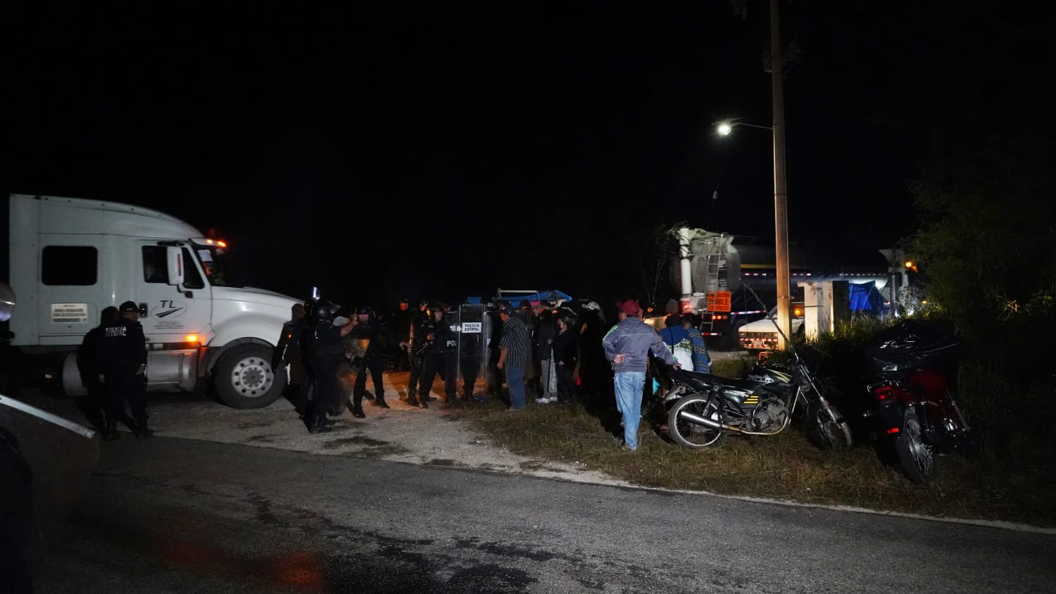 En el operativo del sábado personal de la granja logró ingresar cuatro camiones de insumos con el apoyo de la policía estatal, quienes resguardaron las unidades y cuidaron la integridad de los trabajadores...(OGY)