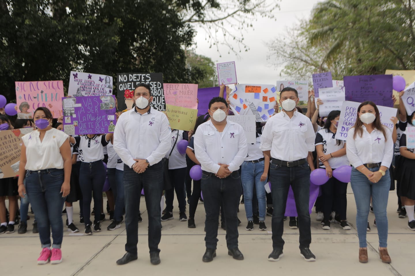 En el plantel Cobay del municipio de Kanasín, autoridades municipales, educativas y alumnas realizaron una marcha pacífica en los alrededores de la escuela para recordar esta fecha tan importante.