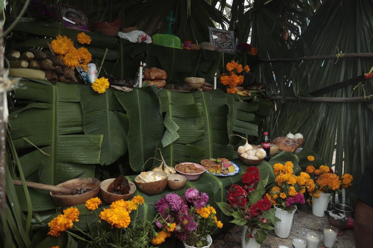 En el altar del Comité Vecinal de Kanasín (Coveka) un X’men vestido de Jaguar realizó un ritual Maya de purificación al alcalde y su esposa y habló sobre cada una de las piezas que adornaban la ofrenda a los difuntos.