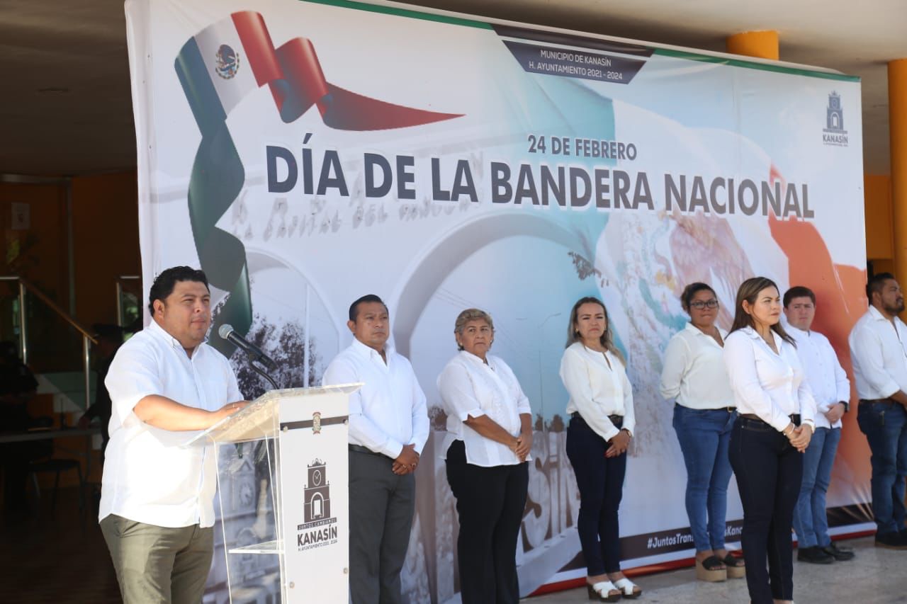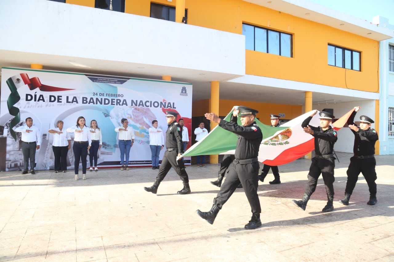 La Bandera Nacional fue trasladada hasta el asta bandera por elementos de la Policía Municipal de Kanasín, donde el alcalde, junto al director de la Policía de Kanasín, Luciano Moo Arceo, atestiguó esta importante ceremonia para colocar el lábaro patrio en el sitio donde hoy muestra sus colores verde, blanco y rojo.